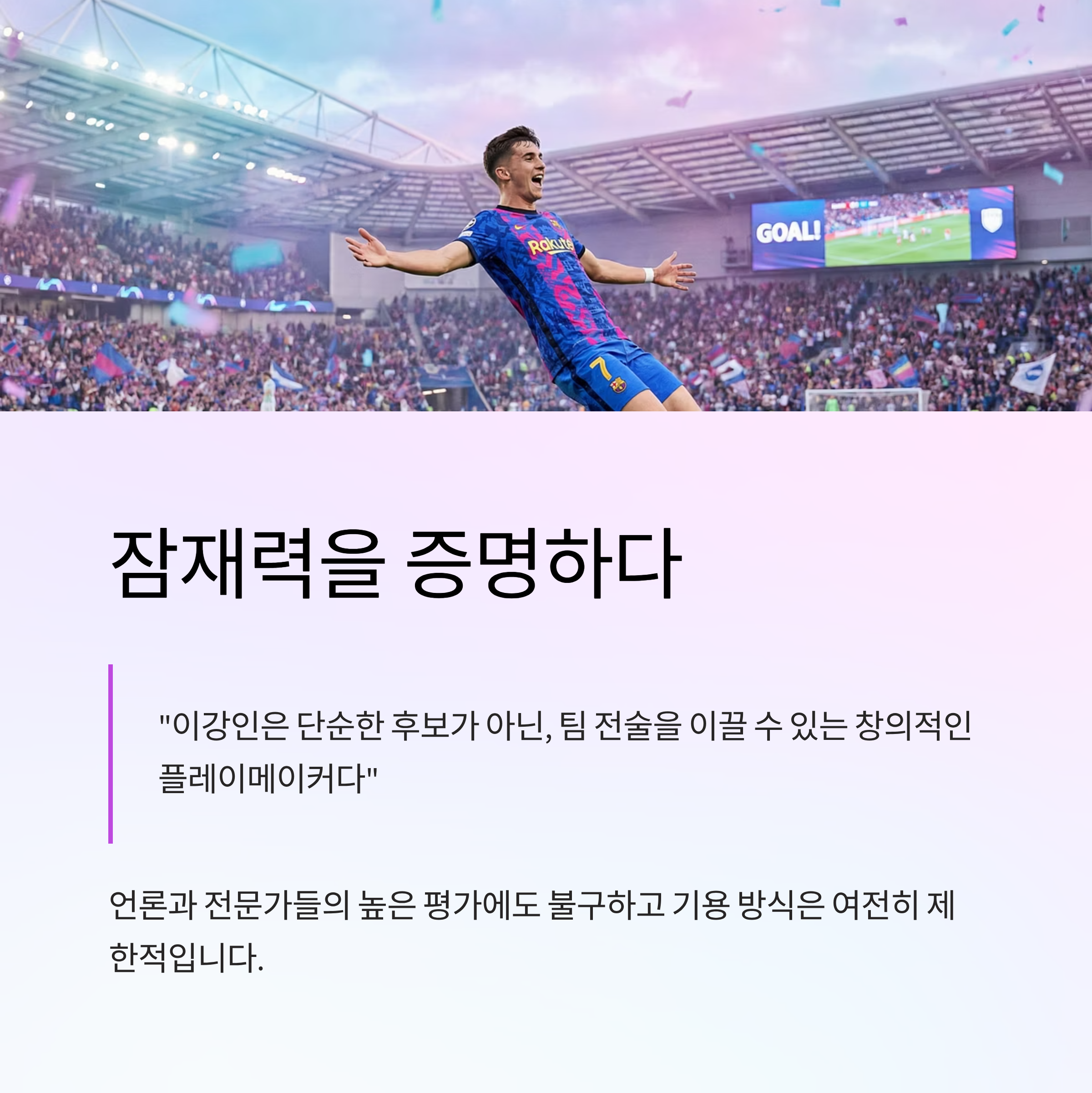 이강인은 유럽 축구 무대에서 기술과 전술적 융통성을 증명한 선수로, PSG에서도 수많은 긍정적인 순간을 만들어 냈습니다. 하지만 감독의 전술적 필요와 선수단 경쟁으로 인해 충분한 출전 시간을 보장받지 못하고 있는 상황에서, 이적 가능성이 제기되고 있습니다. 특히, 리버풀 같은 클럽은 공백을 메울 자원으로, 아틀레티코 마드리드는 창의적인 공격 자원으로 이강인을 주목하고 있습니다. 이강인은 충분한 시간을 확보할 무대에서 기량을 더욱 발휘할 가능성이 높습니다. 다가오는 이적 시즌을 통해, 이강인의 커리어가 새로운 전기로 접어들 수 있을지 기대해봅니다.