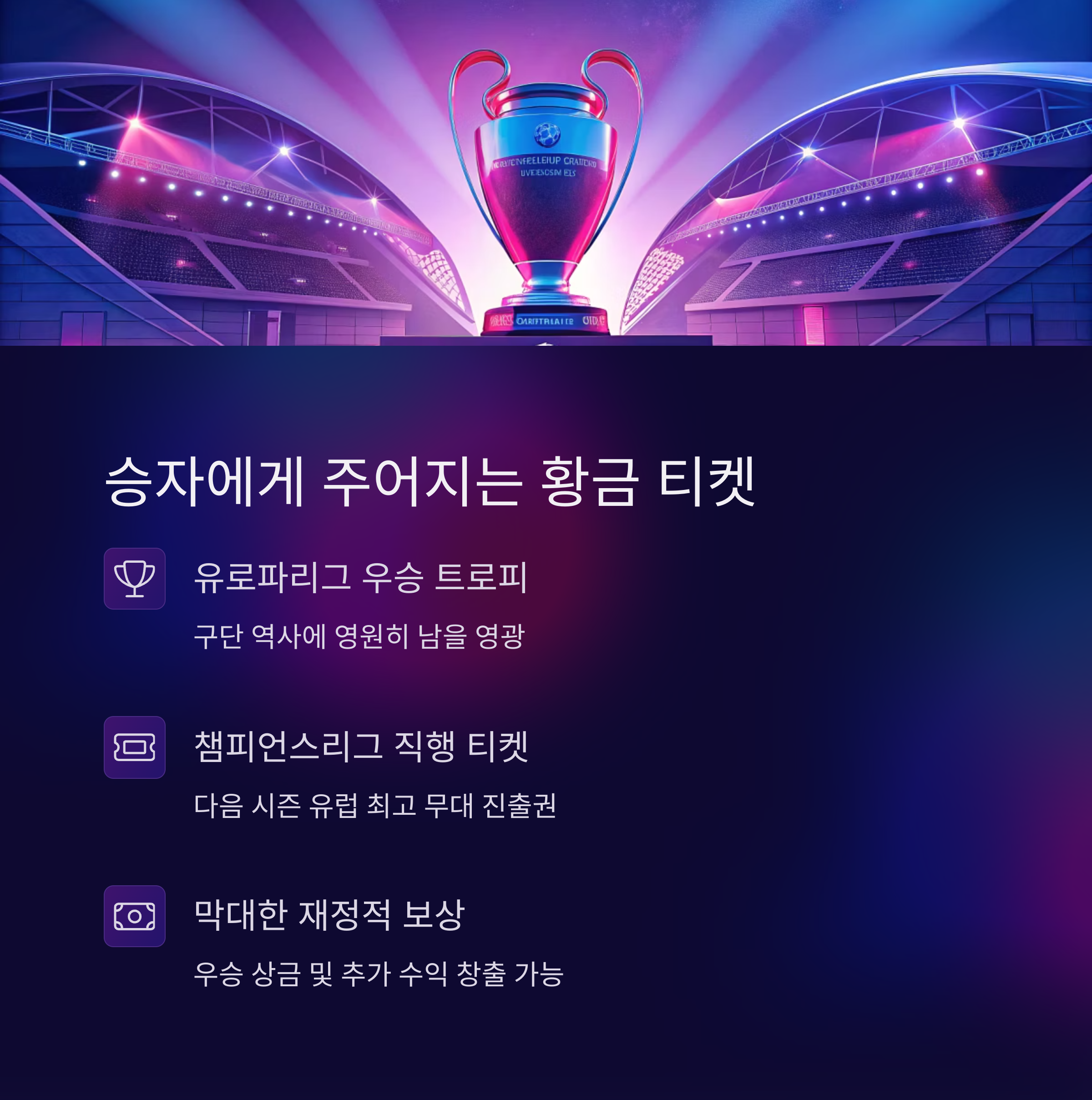 5. 결승전 우승팀은 다음 시즌 UEFA 챔피언스리그에 직행하며 막대한 수익도 얻게 됩니다.