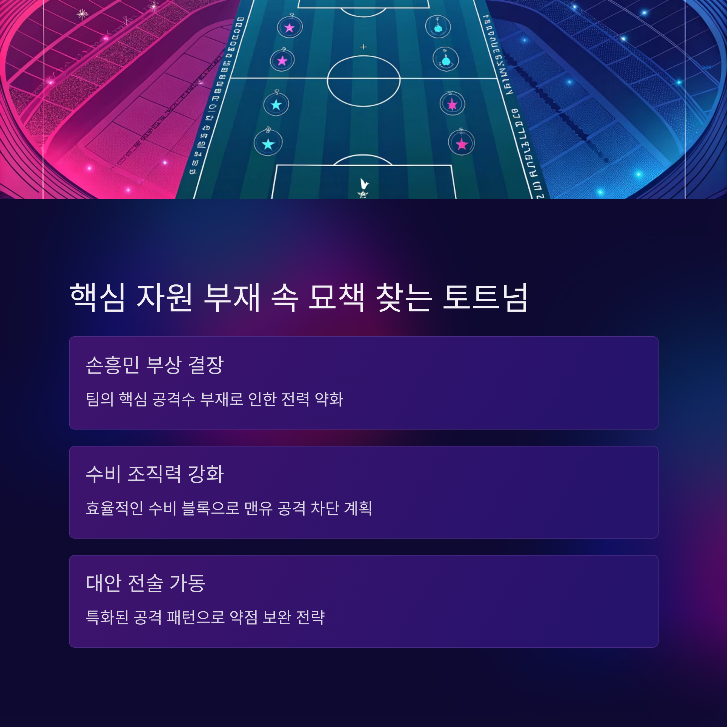 3. 주요 선수가 결장한 토트넘(손흥민 부상)은 효율적인 전술로 이를 만회하려 노력합니다.