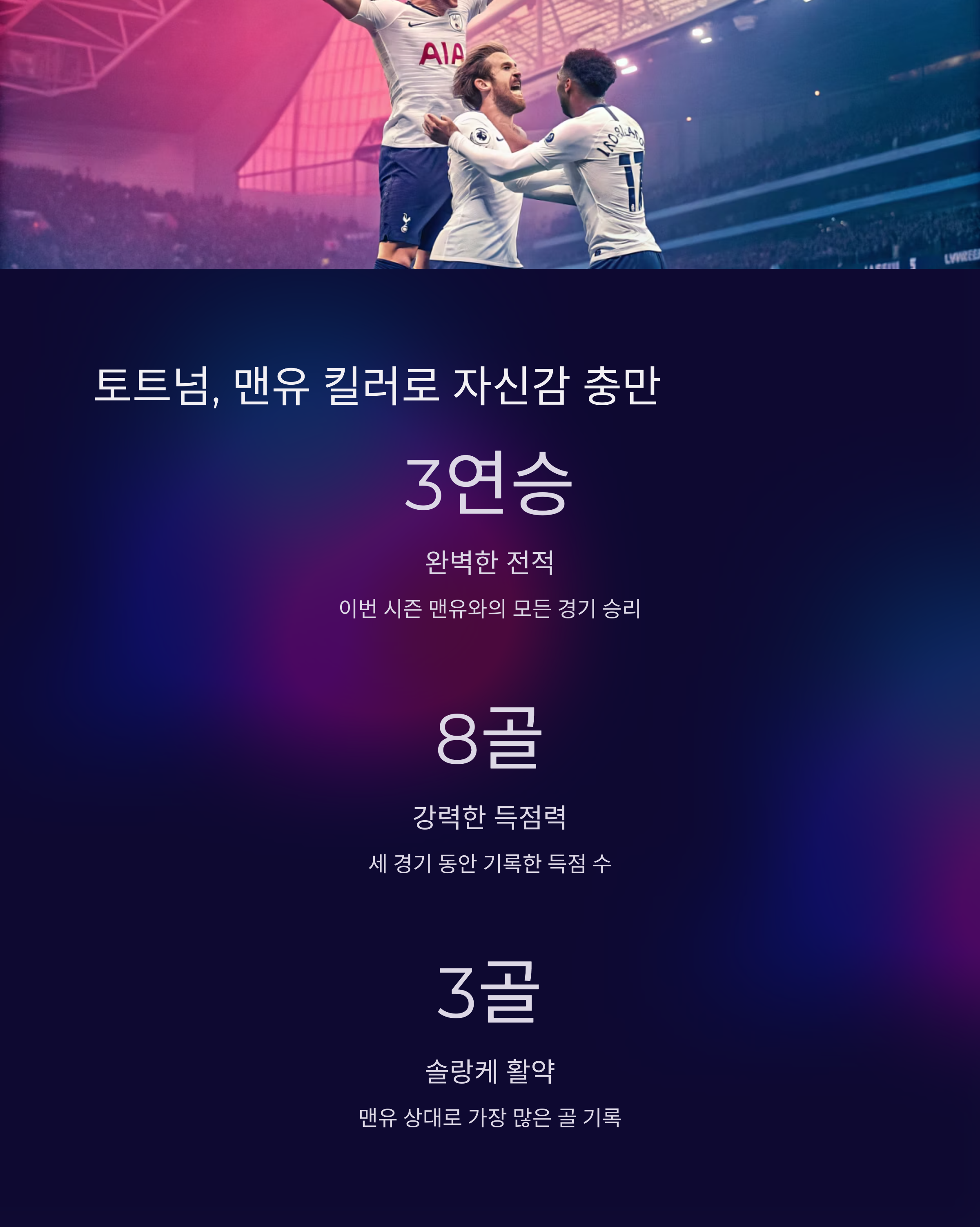 2. 토트넘은 이번 시즌 맨유와의 3차례 전 경기에서 승리하며 우세한 상대 전적을 보유 중입니다.
