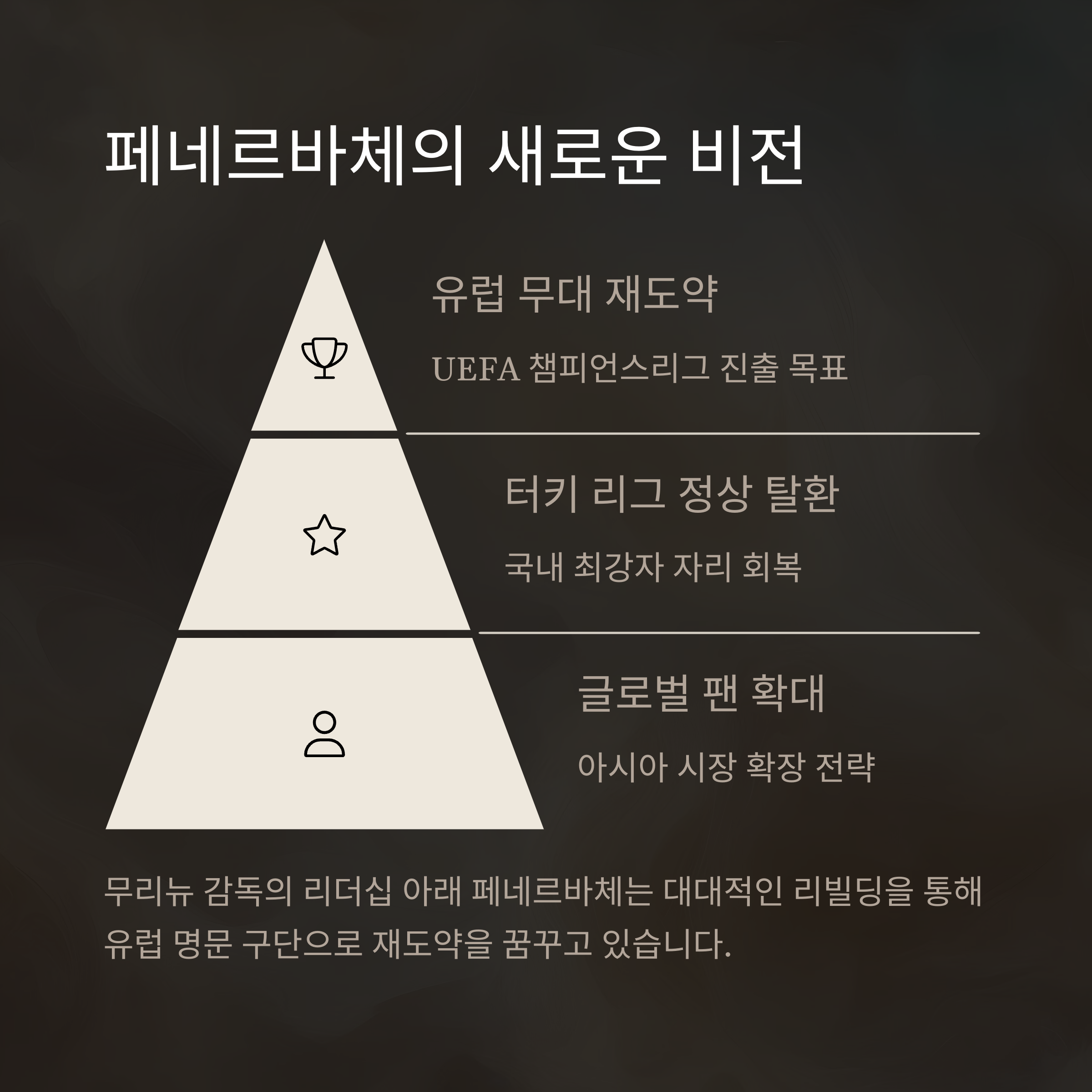 페네르바체는 터키 슈퍼리그의 명문 구단으로, 최근에는 유럽 무대에서 다시 한 번 우뚝 서기를 목표로 하고 있습니다. 무리뉴 감독이 페네르바체를 맡으면서 구단은 새로운 비전과 함께 강력한 리빌딩 프로젝트를 추진 중입니다.
