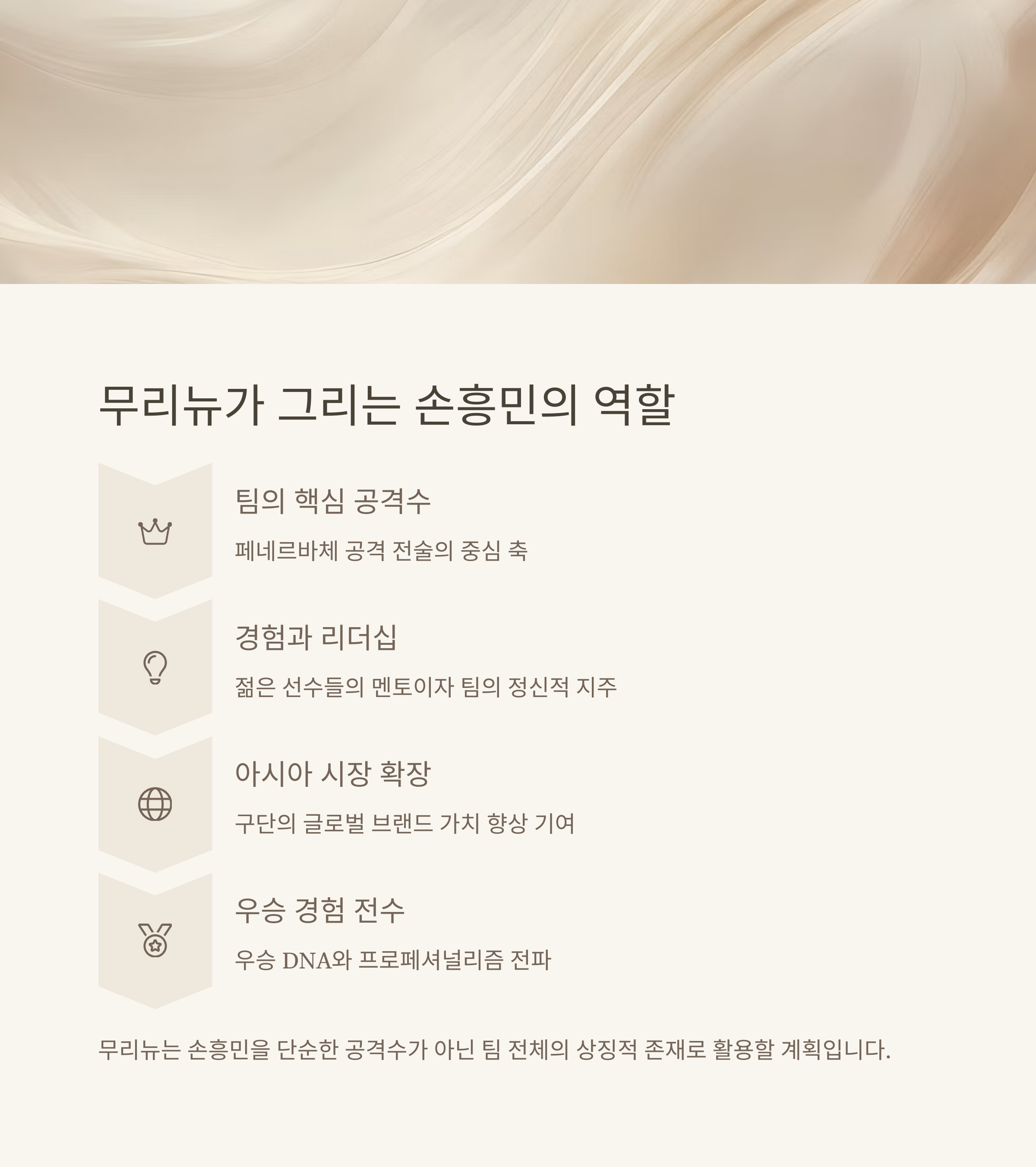 손흥민은 이러한 비전의 중심에 서 있는 선수로 꼽히고 있습니다. 페네르바체는 손흥민에게 구단 최고 연봉인 1,200만 유로를 제안하며, 그를 팀의 간판 스타로 기용할 계획입니다. 이는 AFC 소속 국가 출신 선수에게 매우 큰 중량감을 두고 있는 페네르바체의 결정적인 포인트로 작용하고 있습니다.