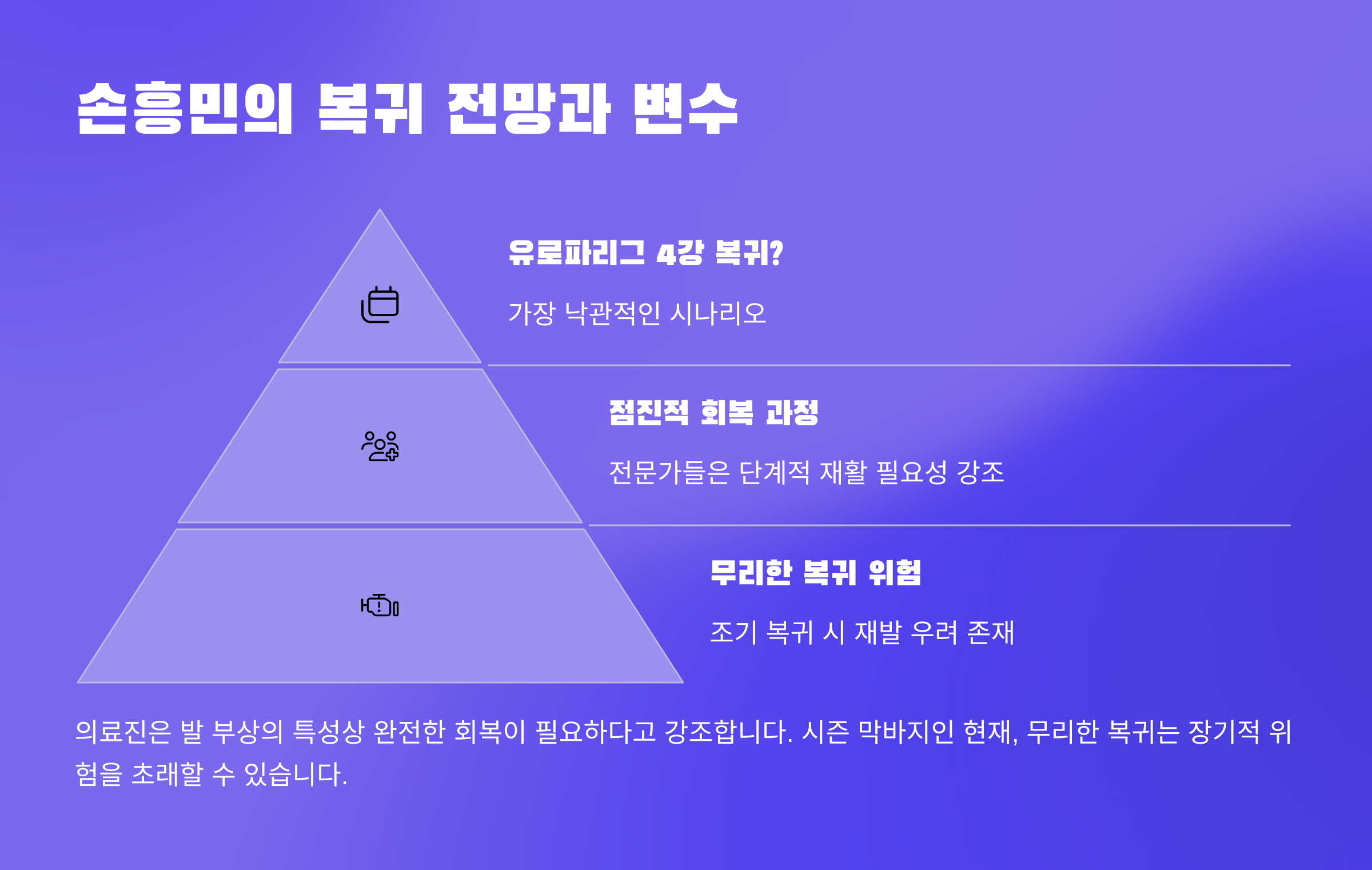 | Q. 손흥민 선수의 복귀 가능 시점은 어떻게 될까요? |