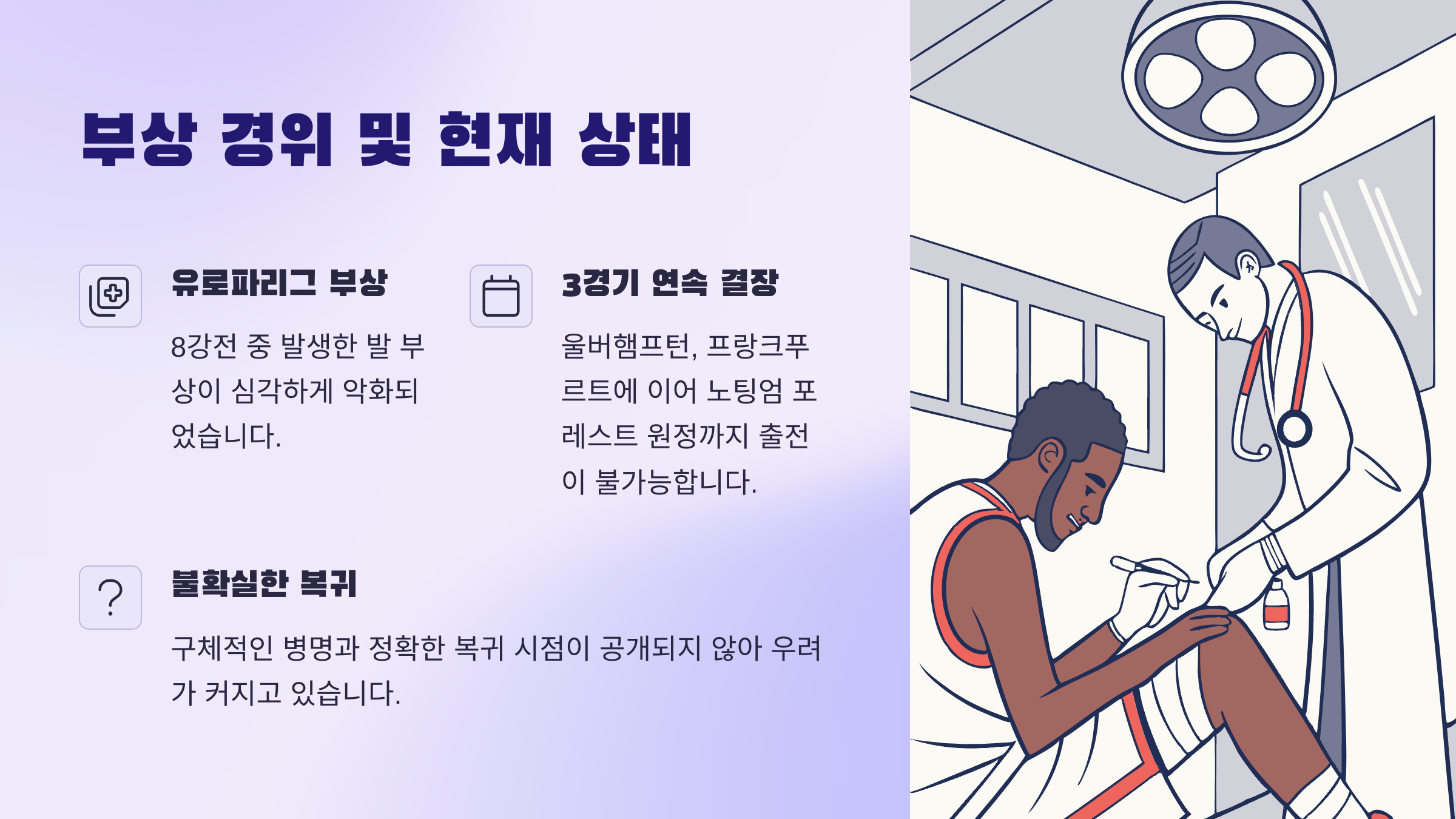 - 팬들 사이에서 시즌 아웃 가능성까지 제기되는 상황.