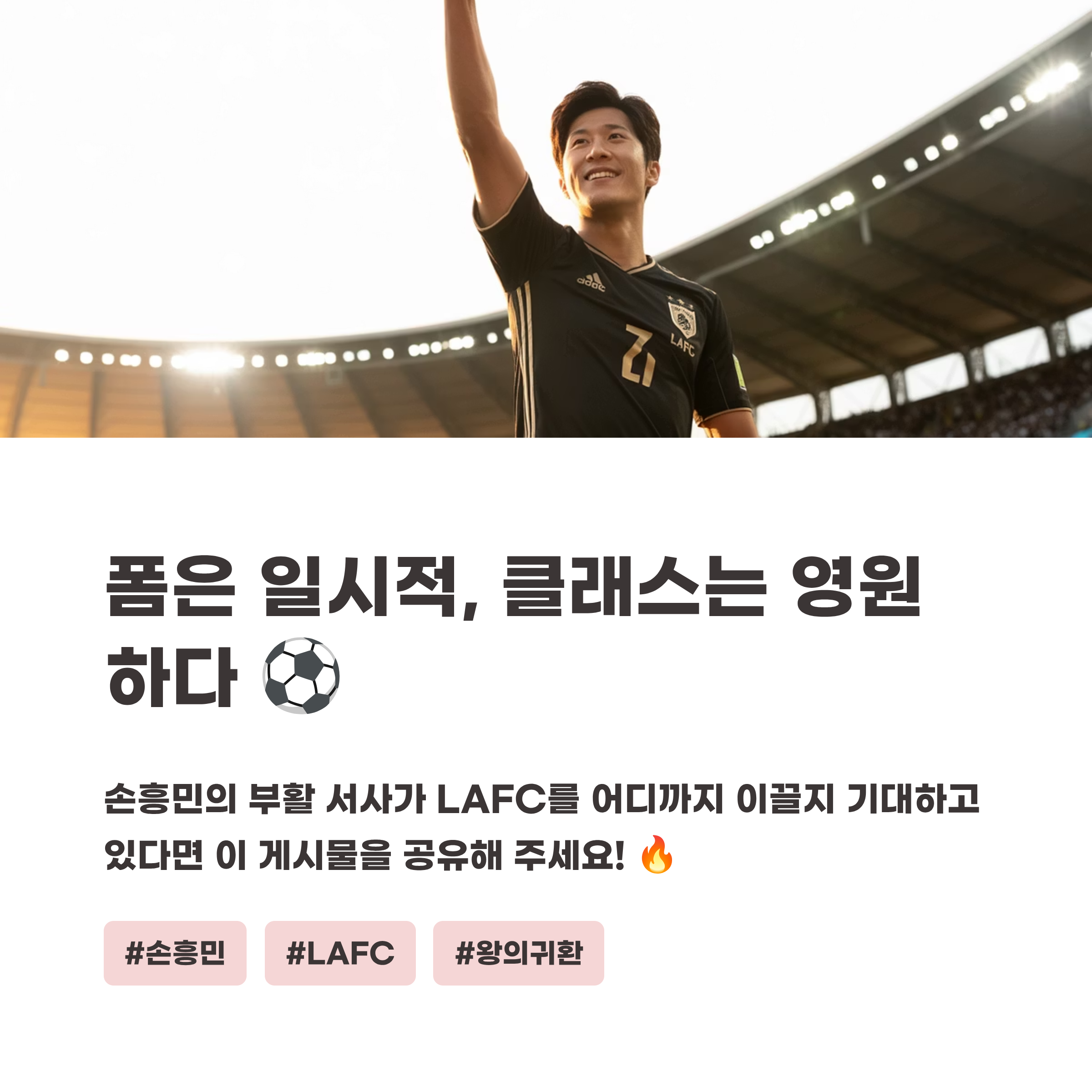 더 나아가 이번 승리는 LAFC를 북중미 챔피언스컵 4강으로 이끌며 더 큰 목표를 바라보게 했습니다. 만약 LAFC가 이 대회에서 우승한다면, 손흥민은 FIFA 클럽 월드컵이라는 새로운 무대에 도전할 기회를 얻게 됩니다. 유로파리그 우승 경험이 있는 그가 북중미 대륙 컵대회 우승과 클럽 월드컵 출전이라는 새로운 커리어를 추가하는 것은 선수 개인에게 엄청난 동기부여가 될 것입니다. '폼은 일시적이지만 클래스는 영원하다'는 말을 스스로 증명해낸 손흥민. 그의 발끝에서 시작된 부활의 서사가 LAFC를 어디까지 이끌고 갈지, 그의 새로운 도전을 모든 팬들이 기대와 설렘으로 지켜보고 있습니다. 그의 환한 미소가 더 많은 골과 승리로 이어지기를 응원합니다.