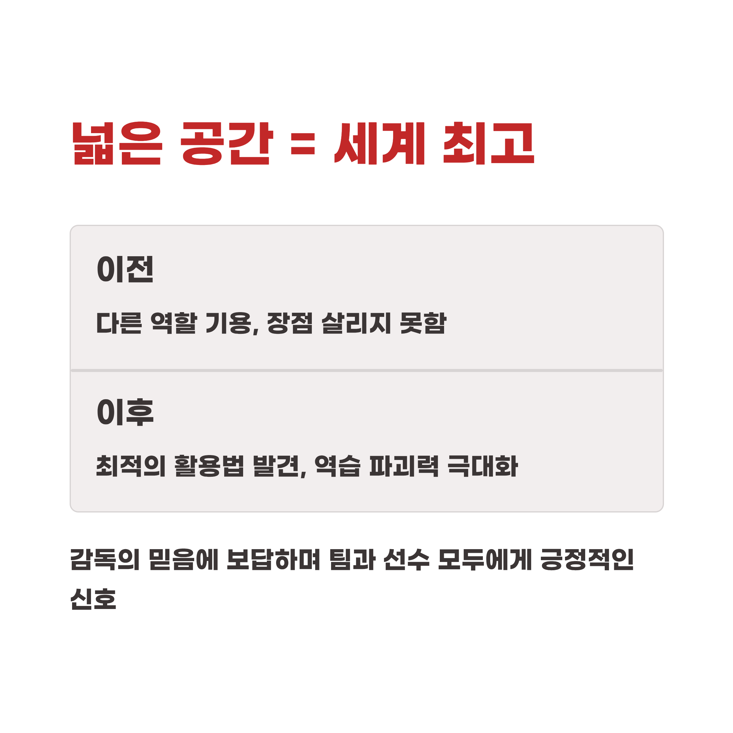 이 장면은 손흥민을 어떻게 활용해야 가장 위력적인지를 명확하게 보여준 사례입니다. 그에게 넓은 공간이 주어졌을 때, 그는 세계 최고 수준의 공격수로 변모합니다. 이전까지 그를 다른 역할에 기용하며 장점을 살리지 못했던 아쉬움이 있었지만, 이제라도 감독이 최적의 활용법을 찾았다는 점에서 팀과 선수 모두에게 긍정적인 신호입니다. LAFC가 전술적 유연성을 확보하고 역습의 파괴력을 한층 더 끌어올리는 계기가 되었으며, 손흥민은 자신이 가장 잘하는 플레이를 통해 팀 승리에 기여하며 감독의 믿음에 보답했습니다.