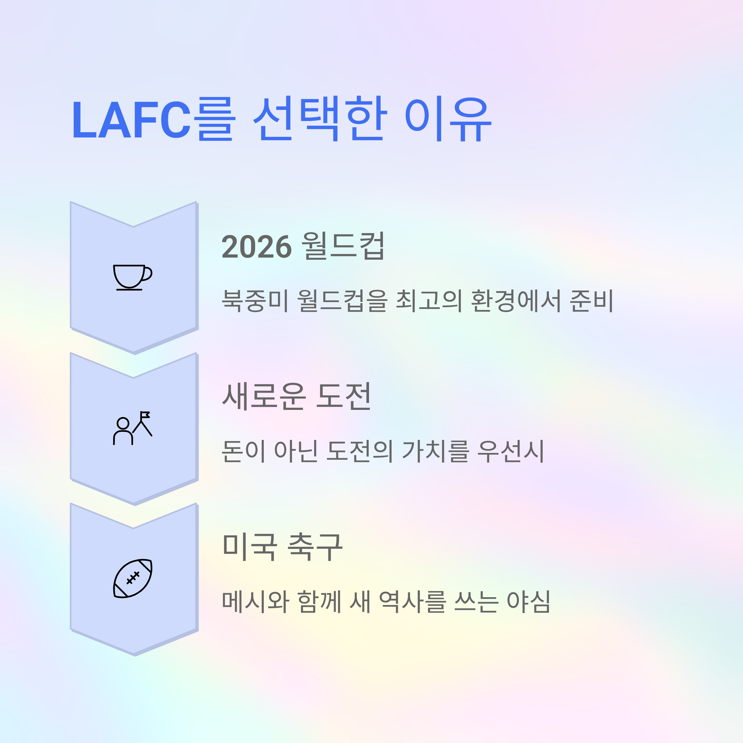 LAFC 선택 이유: 유럽 빅클럽과 사우디의 거액 제안도 있었으나, 2026 월드컵 준비와 새로운 도전을 위해 미국행을 결심.