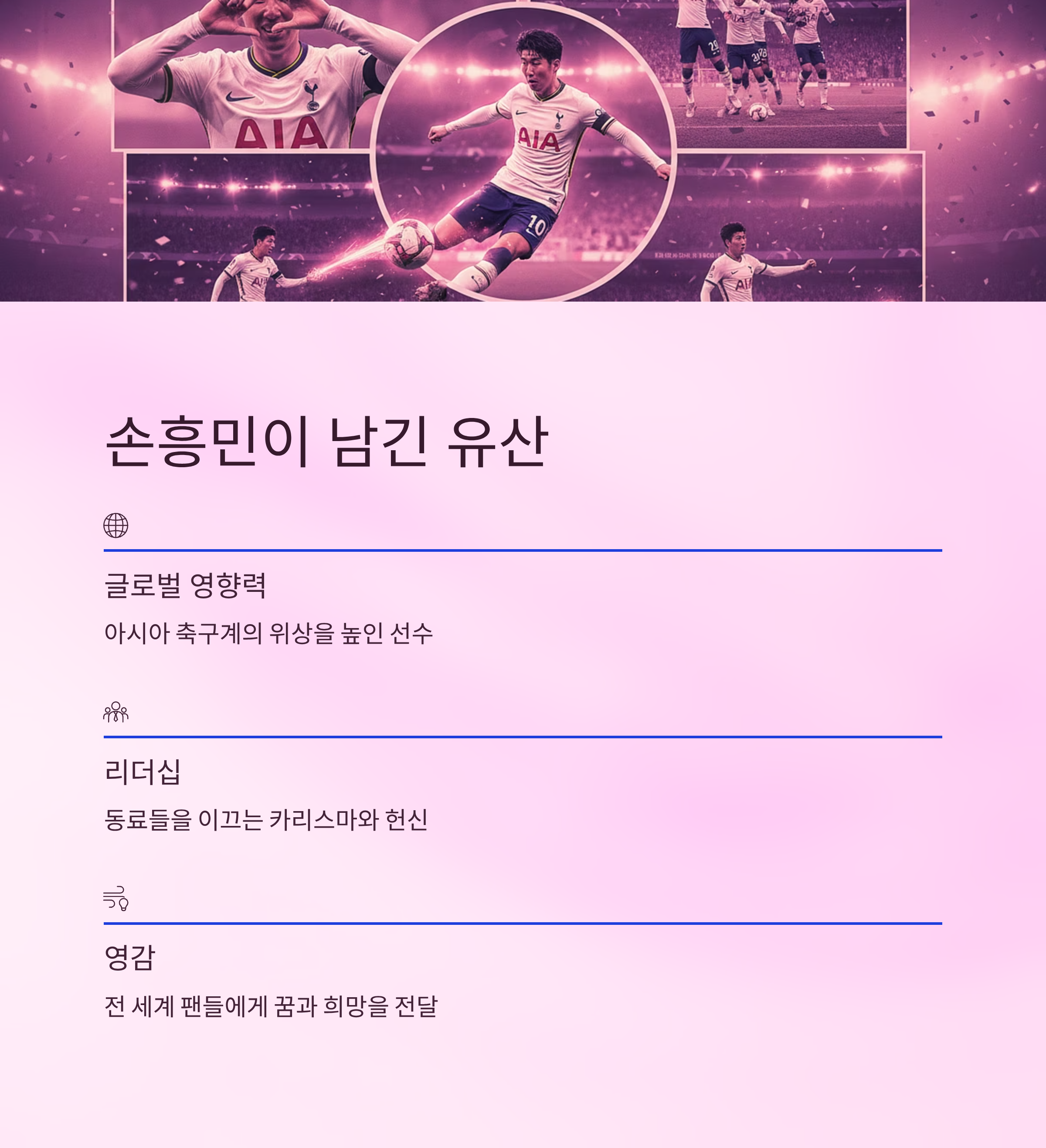 - 손흥민의 과거 업적과 상징성