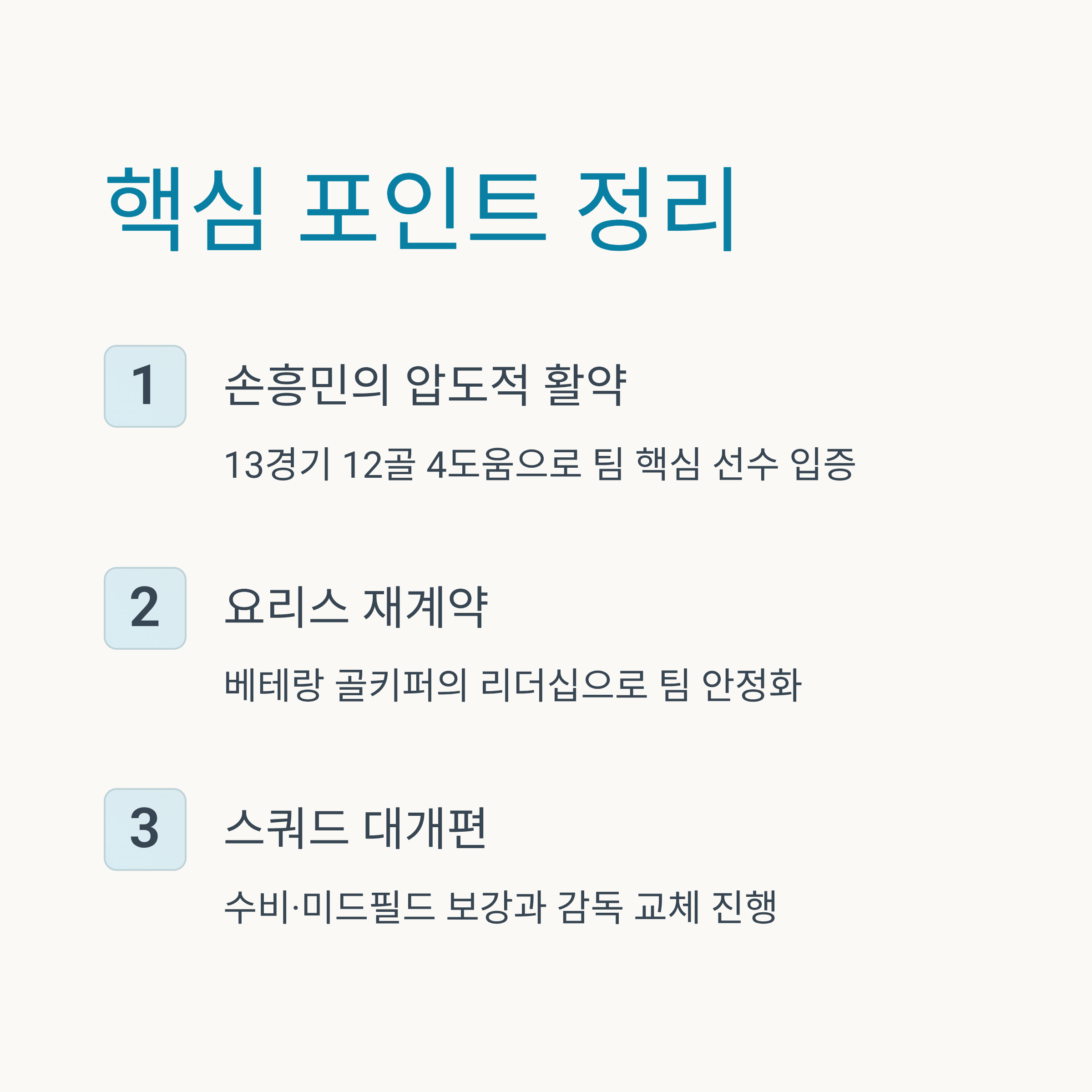 5. 새로운 감독의 선임은 손흥민과 팀 전체 경기력에 큰 영향을 미칠 것으로 보입니다.