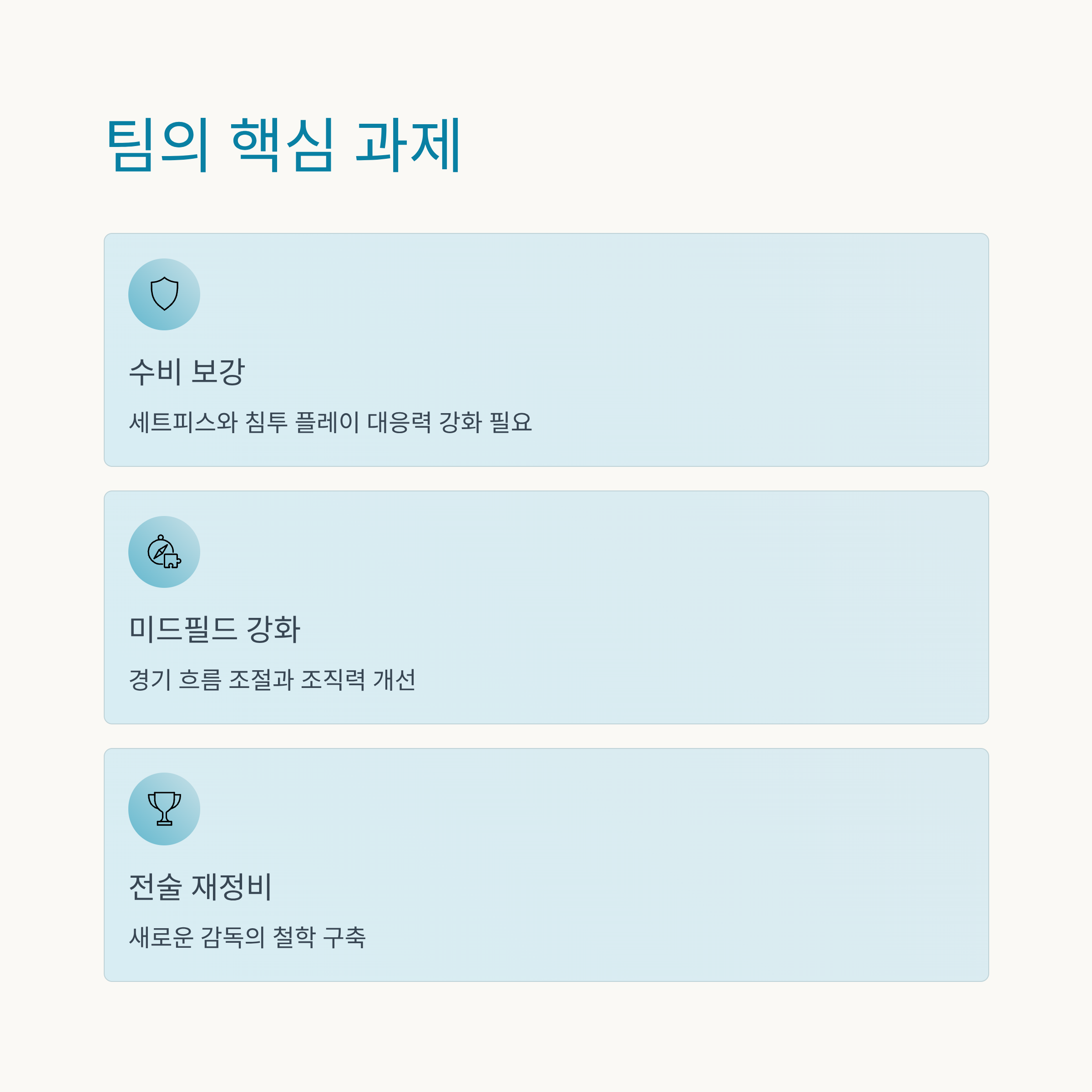 특히 시즌 내내 공격진이 많은 골을 기록하며 팀의 활력을 불어넣었던 반면, 수비진의 부재와 경기 후반 집중력 부족은 결정적인 패배 원인으로 꼽혔습니다. 이는 클럽 내부적으로 더욱 강력한 전력 보강의 필요성을 느끼게 했습니다.