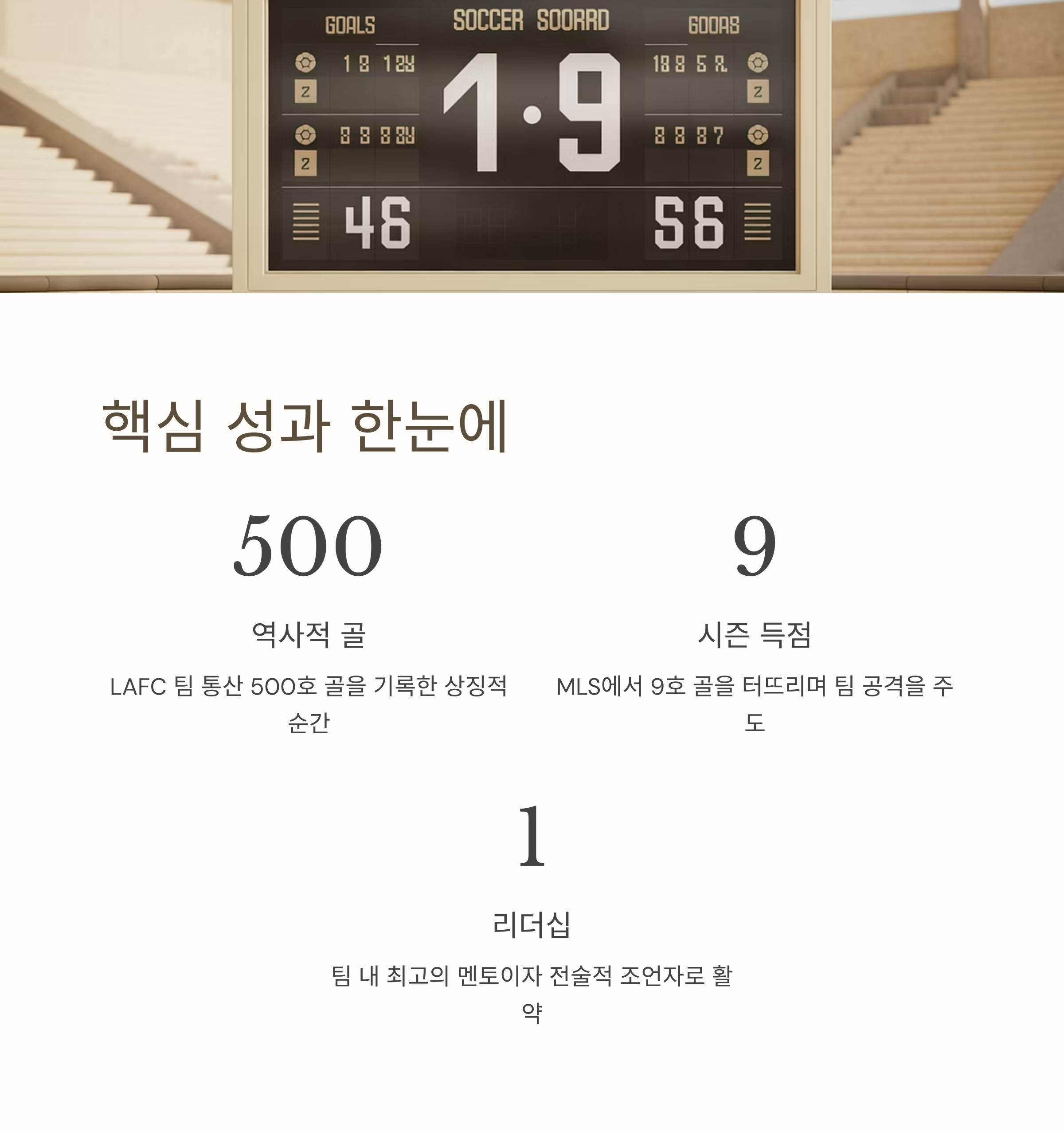 | A. 그의 목표는 소속 팀인 LAFC를 강팀으로 자리 잡게 하고, 지속 가능한 성장과 주요 경기에 우승 기회를 만들어내는 데 기여하는 것입니다. |