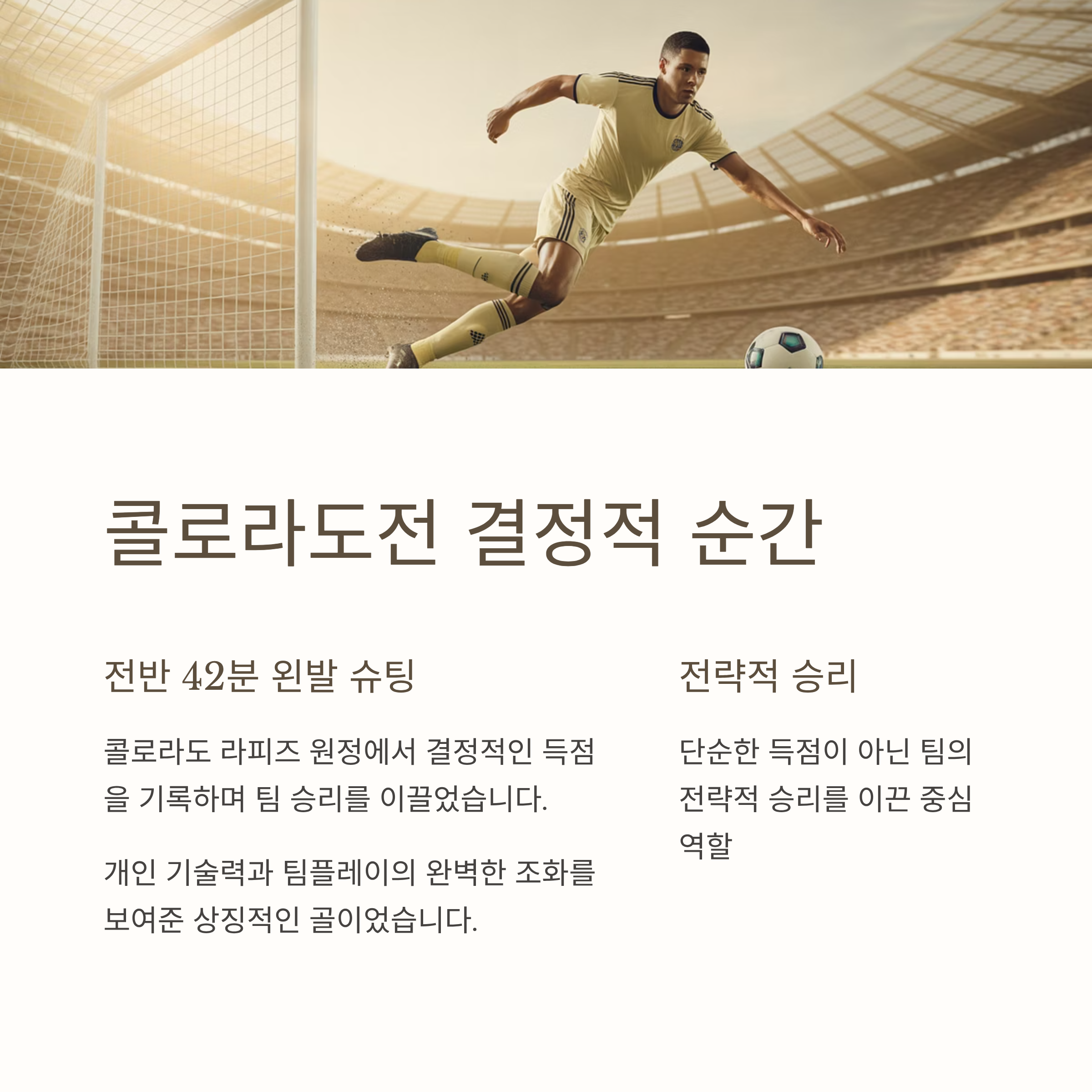 3. 콜로라도 라피즈와의 경기에서 손흥민 선수는 중요한 득점을 기록하며 팀 목표 달성에 크게 기여했습니다.