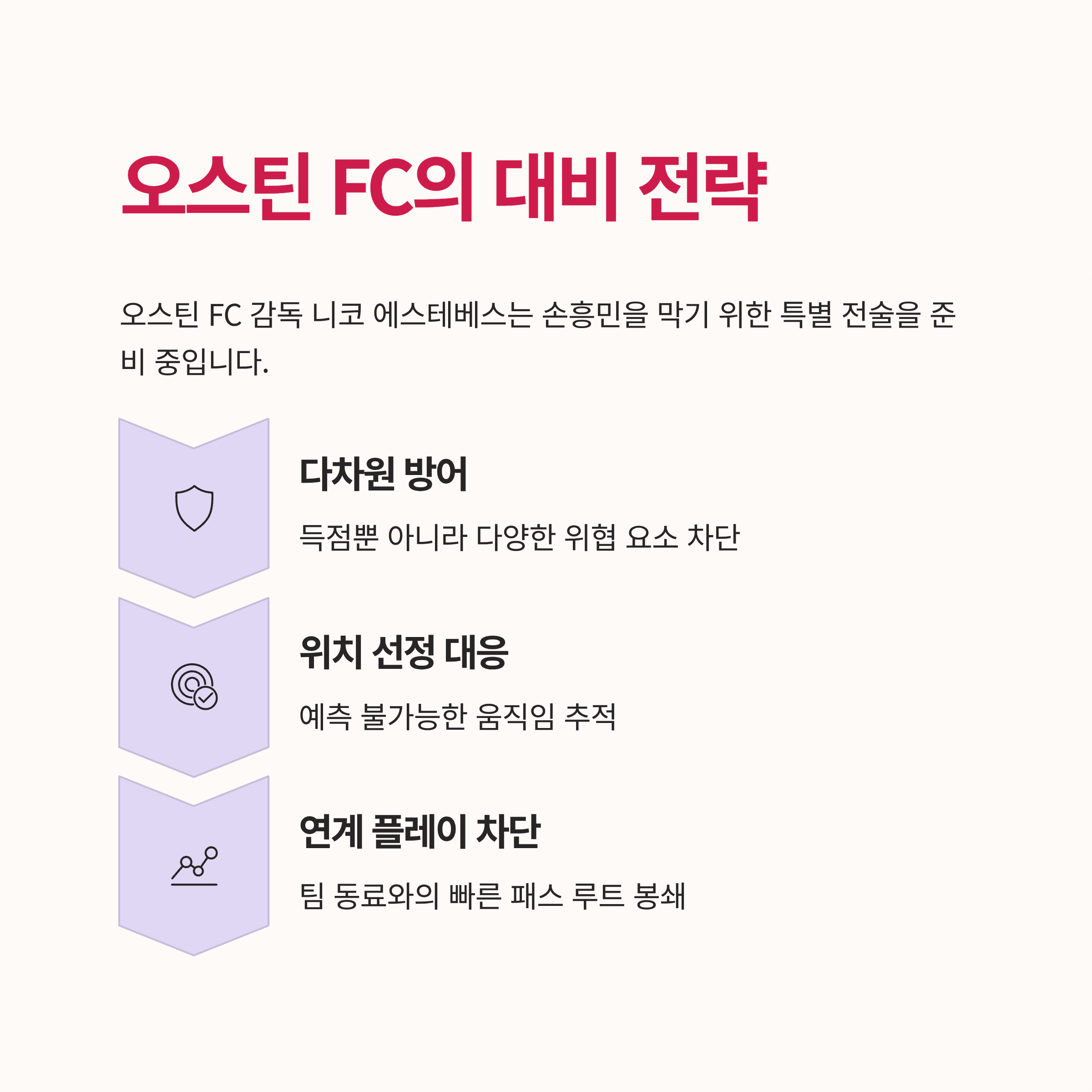 - 오스틴 FC 감독의 손흥민 대비 전략