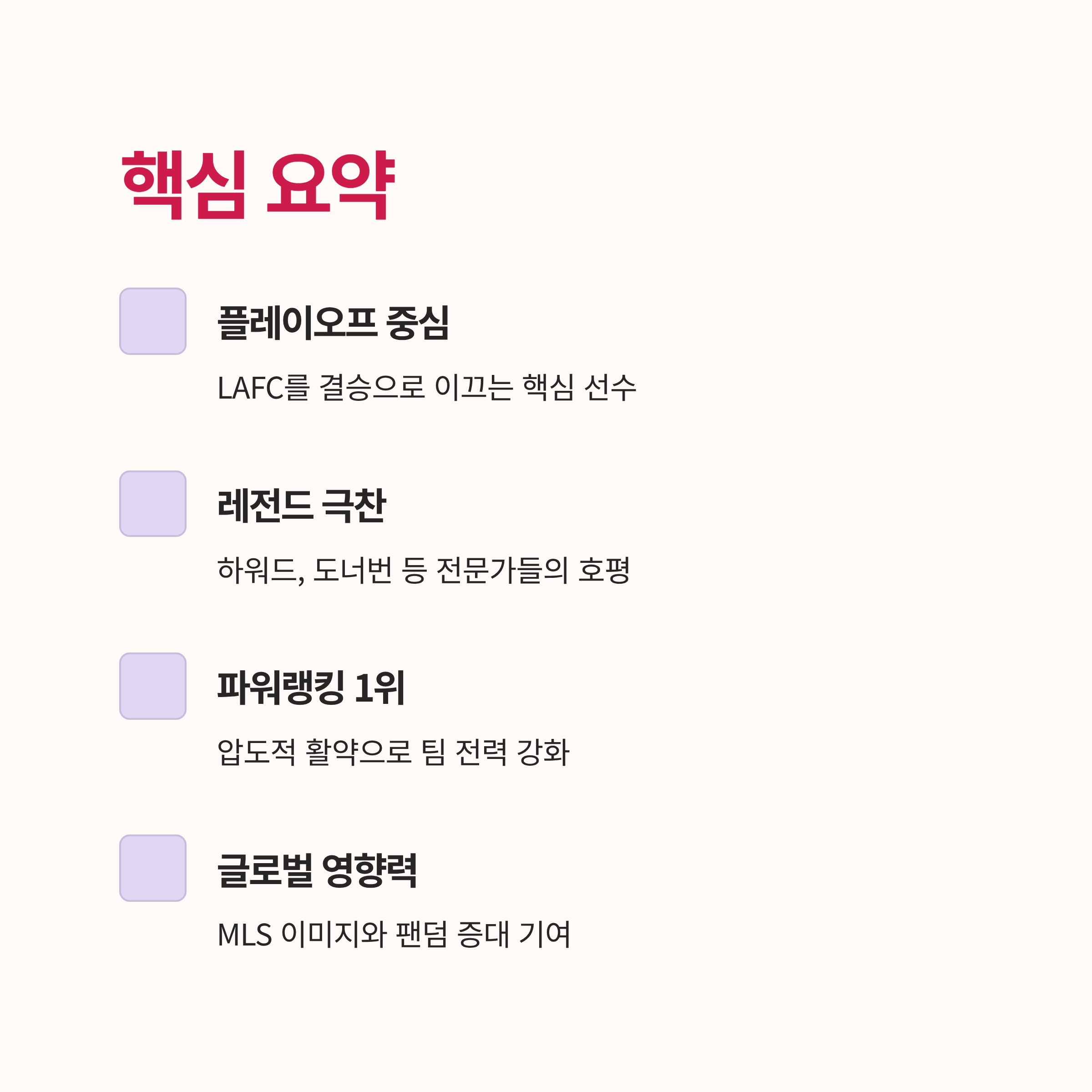 관련 태그: MLS, 손흥민, LAFC, 인터 마이애미, 리오넬 메시, 플레이오프