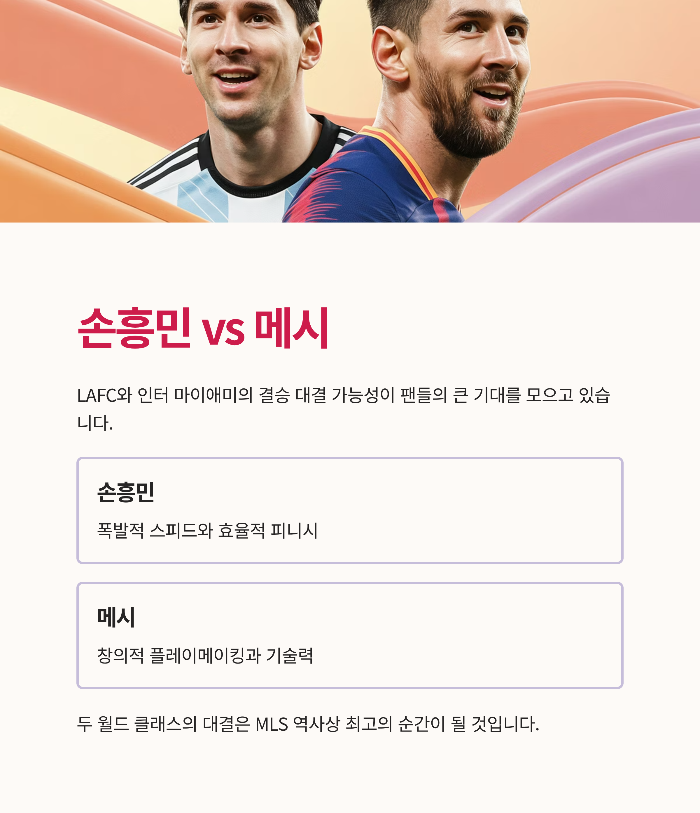| Q. 손흥민과 리오넬 메시의 MLS 결승 경기 가능성은 얼마나 높은가요? |