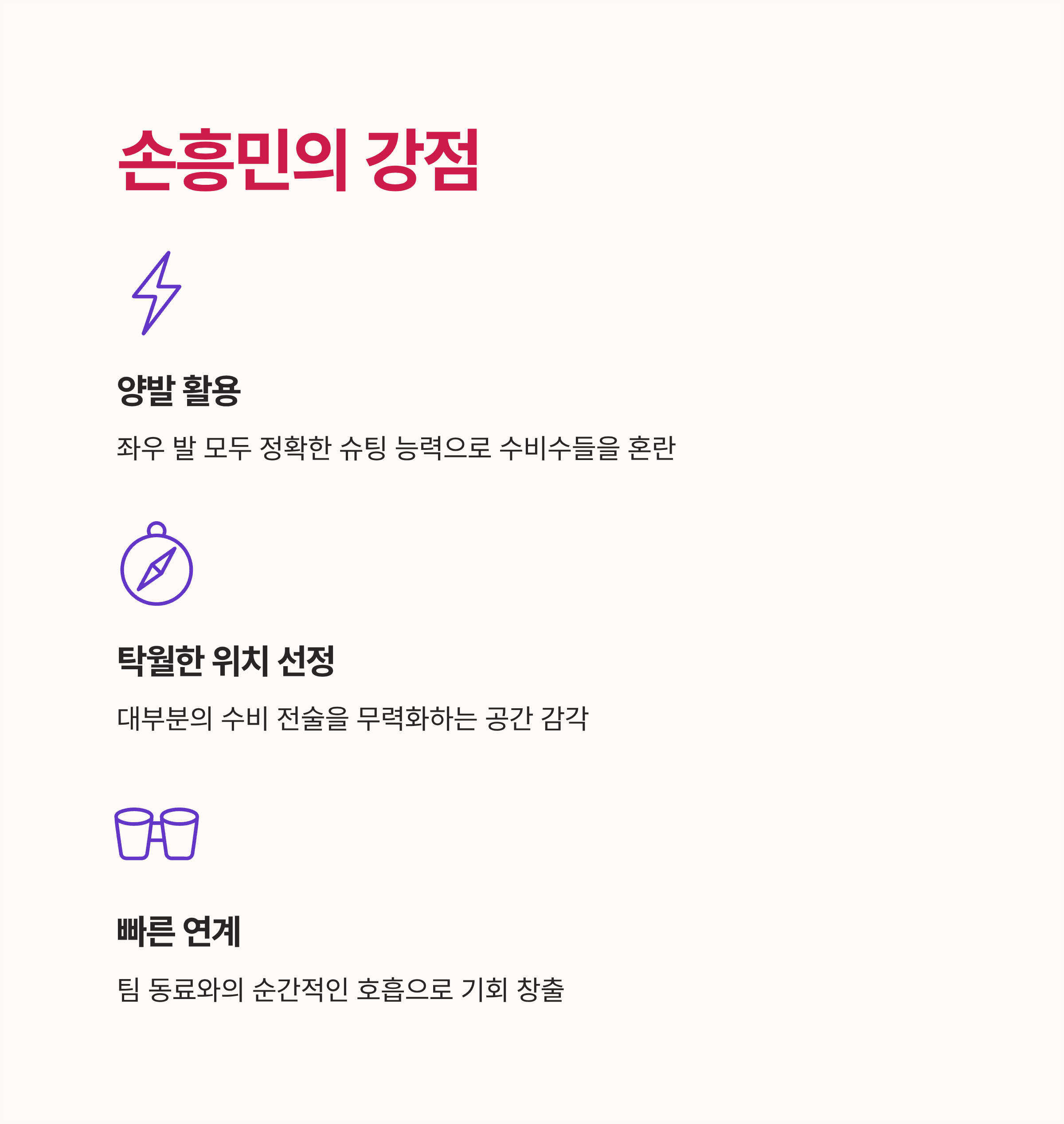 | Q. 손흥민의 플레이 스타일의 강점은 무엇인가요? |