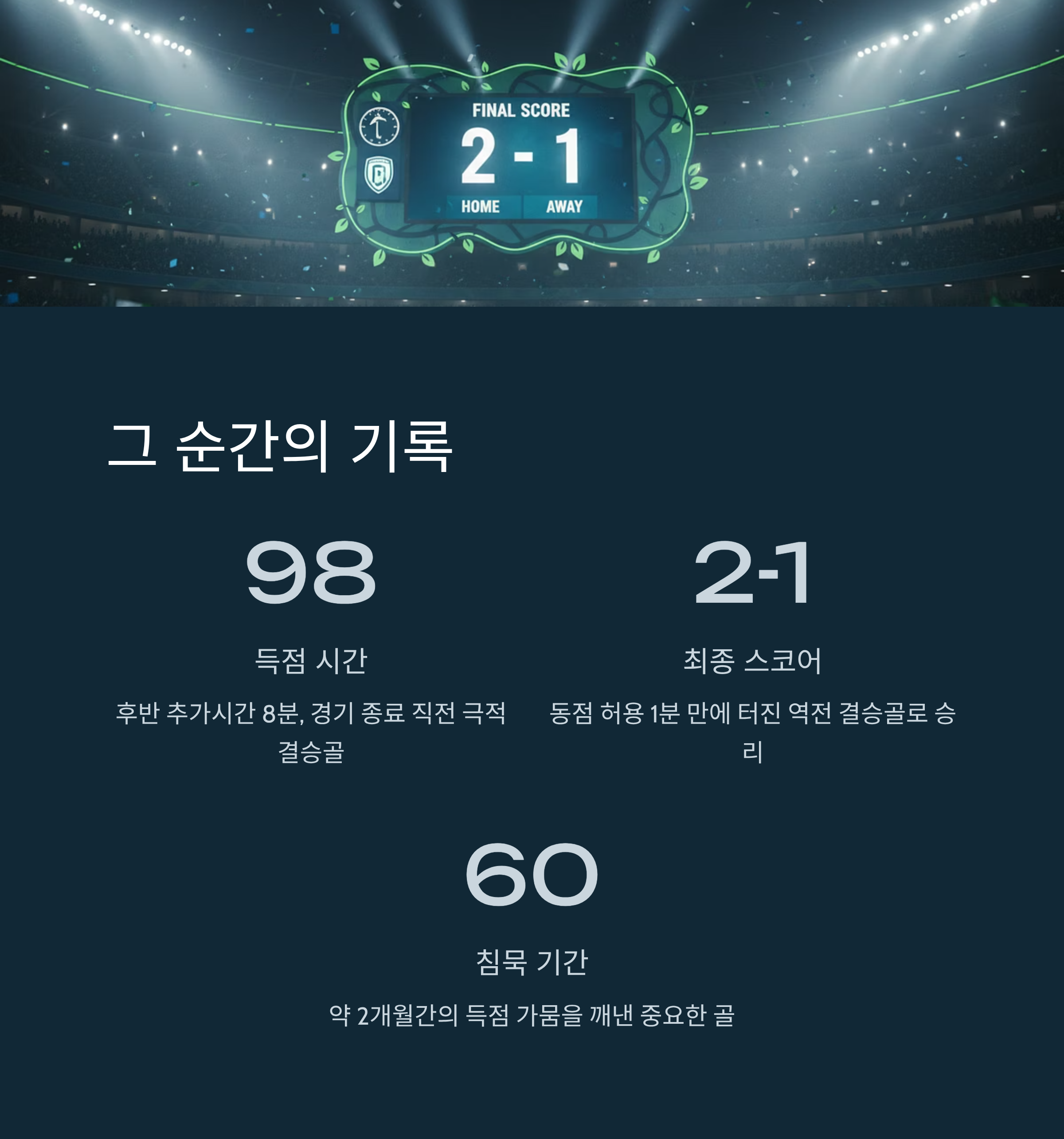 2. 영웅의 탄생: 98분에 터진 극적인 극장골