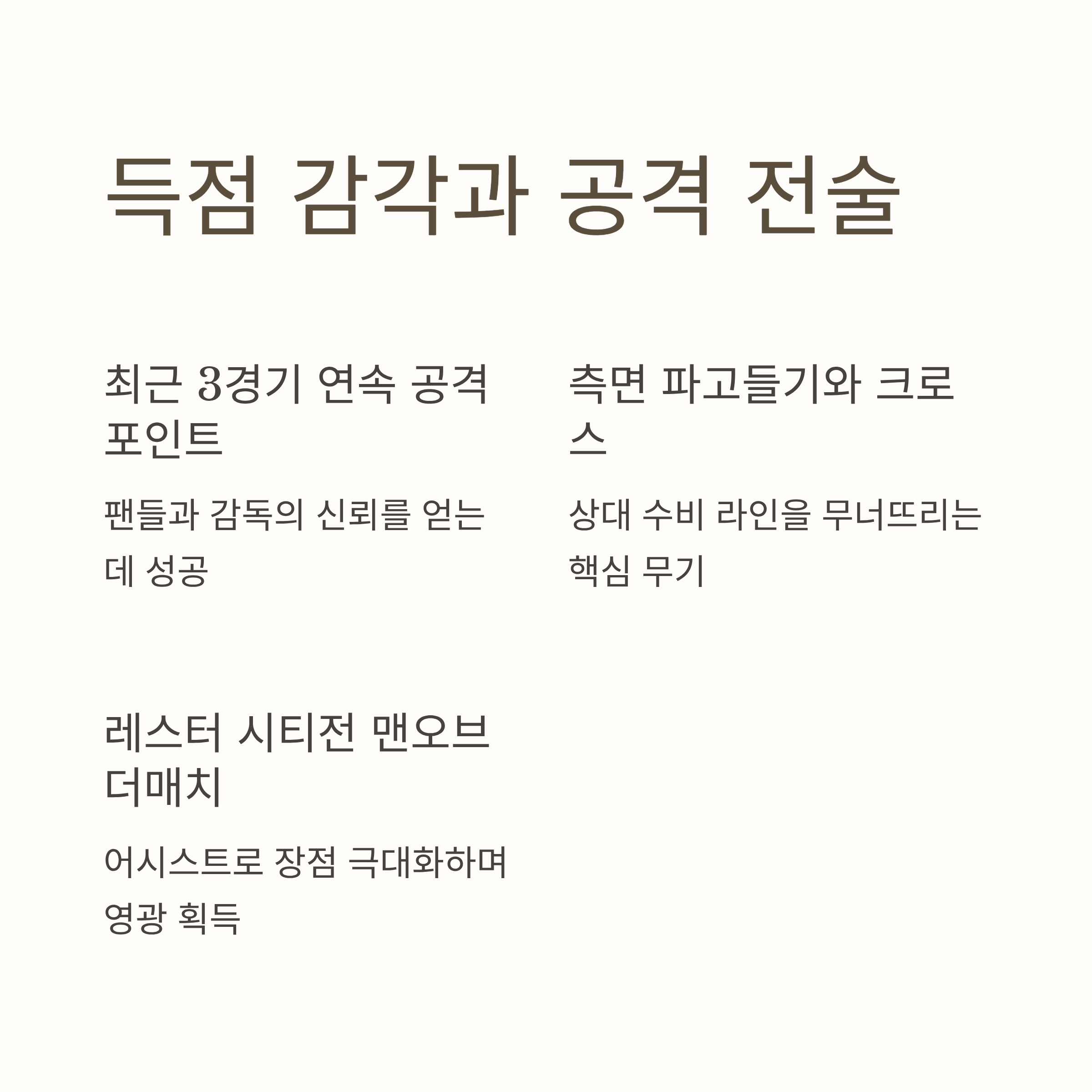 2. 득점 감각과 기존의 틀을 깬 공격 전술 활용