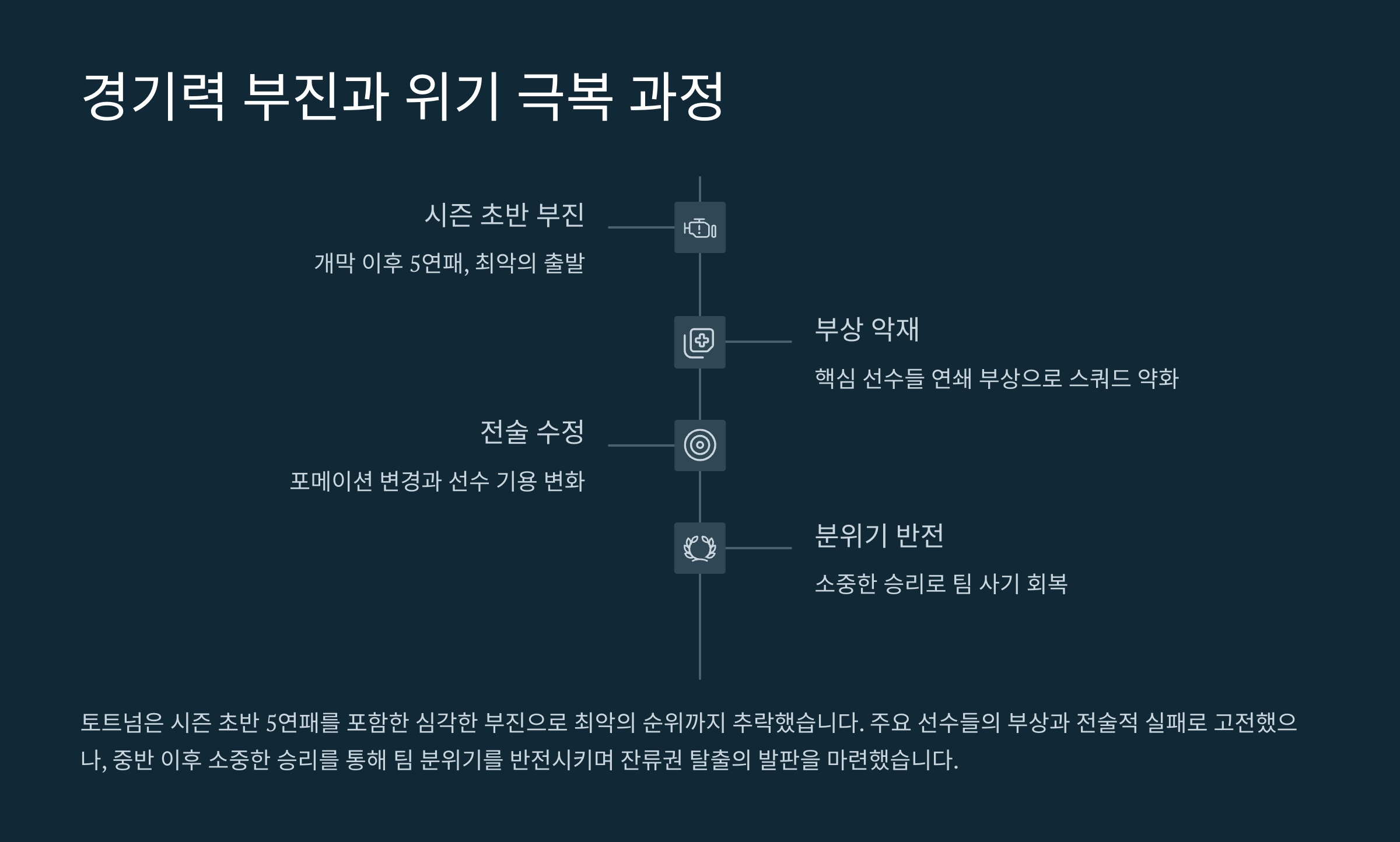 토트넘은 시즌 중반, 부진한 경기력으로 강등권까지 추락했으나 감독 교체 이후 빠르게 전술을 수정하는 데 성공했습니다. 새로운 감독은 중원 강화와 더불어 공격진 대형 재편이라는 결단을 통해 팀 전술을 간결하고 효과적으로 조정했습니다. 특히 손흥민을 중심으로 한 역습 전술이 성공을 거두며, 리그 후반부에 걸쳐 승점을 꾸준히 쌓아 올렸습니다.