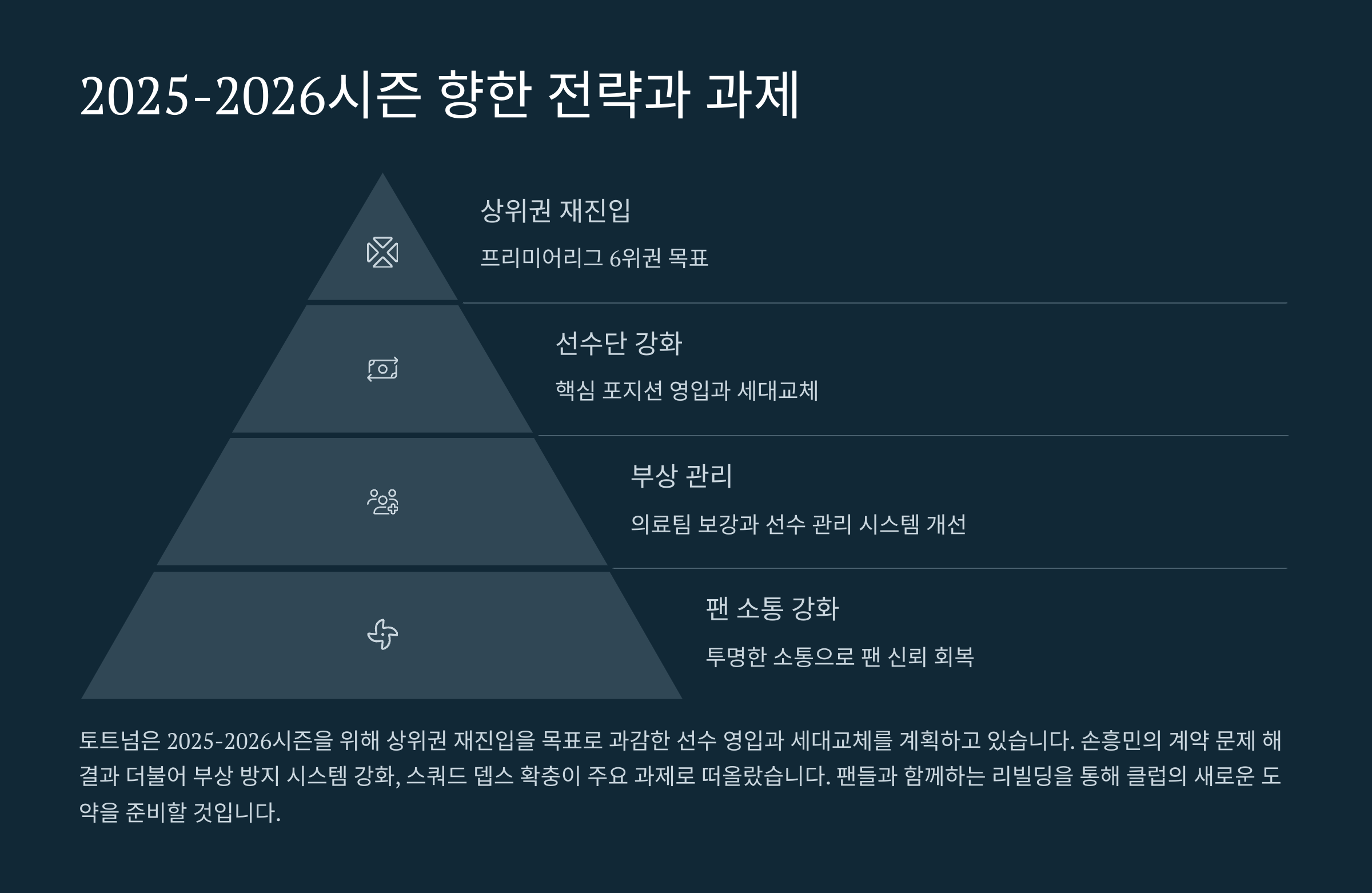 5. 클럽은 향후 시즌 대비를 위해 보강과 경기력 재정비에 나설 예정입니다.