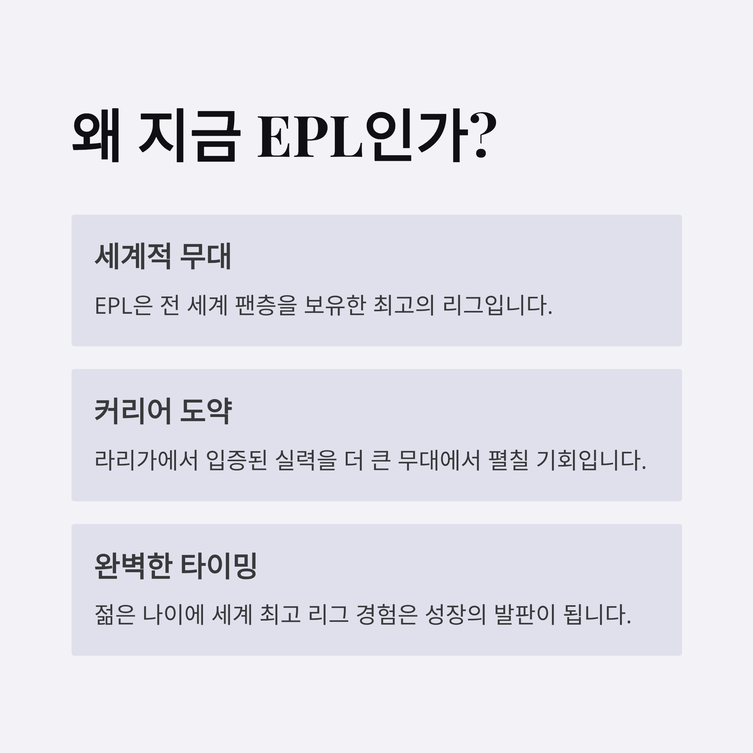 | Q. EPL에서 가장 큰 도전 과제는 무엇일까요? |