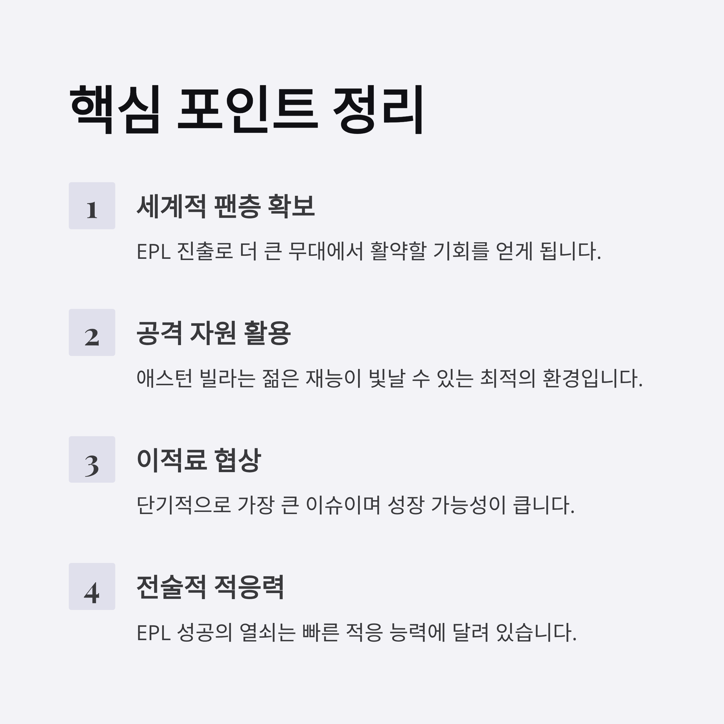 전문가들은 그의 전술적 적응 능력이 EPL에서 성공의 열쇠가 될 것이라고 보고 있습니다.