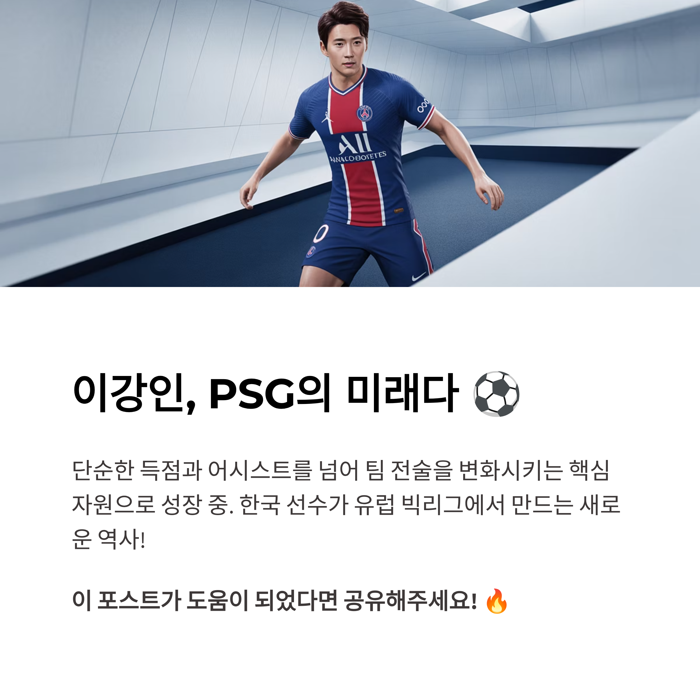 이강인은 새롭게 이적한 PSG에서 자신만의 가치를 증명해가며 한 단계씩 성장하고 있다. 그의 플레이는 단순한 득점과 어시스트 이상의 의미를 담고 있으며, 팀 전술을 변화시키는 데 중요한 역할을 하고 있다. 앞으로 꾸준한 경기력과 자신감 있는 플레이를 통해 더 높은 무대에서 활약할 가능성은 매우 크다. PSG가 이러한 잠재력을 더욱 끌어낼 수 있을지 기대되며, 이강인의 활약상은 한국 선수들이 유럽 빅리그에서 가지는 중요한 사례로 기억될 것이다.