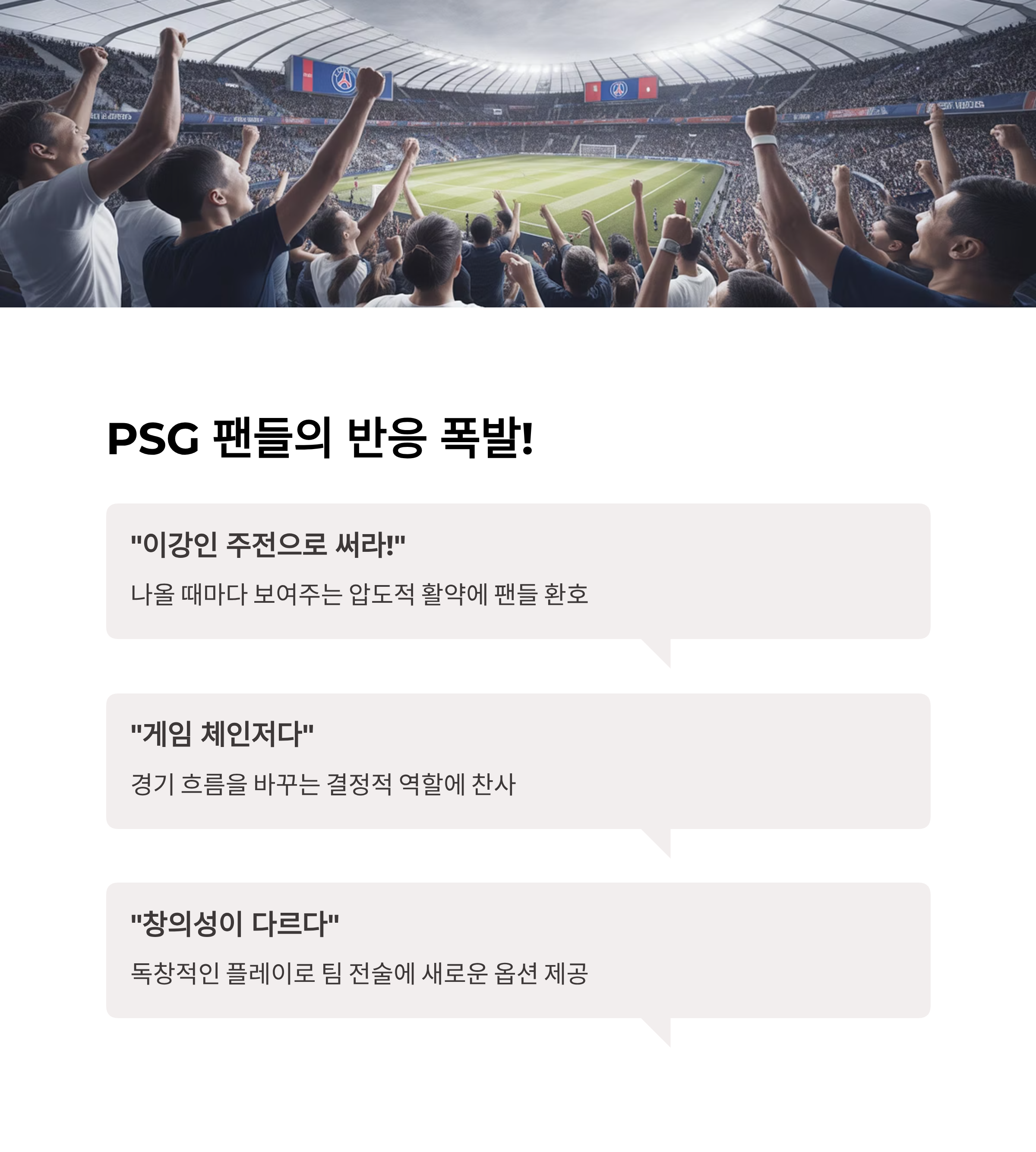 이강인의 이번 경기는 단기간의 활약이 아닌 PSG에서의 지속적인 성장 가능성을 확인하는 계기가 되었습니다. 그의 독보적인 패스 능력과 창의성은 팬들을 매료시켰으며, 파리 생제르맹의 공격 전개에 변화를 가져올 수 있음을 다시 한 번 입증했습니다.