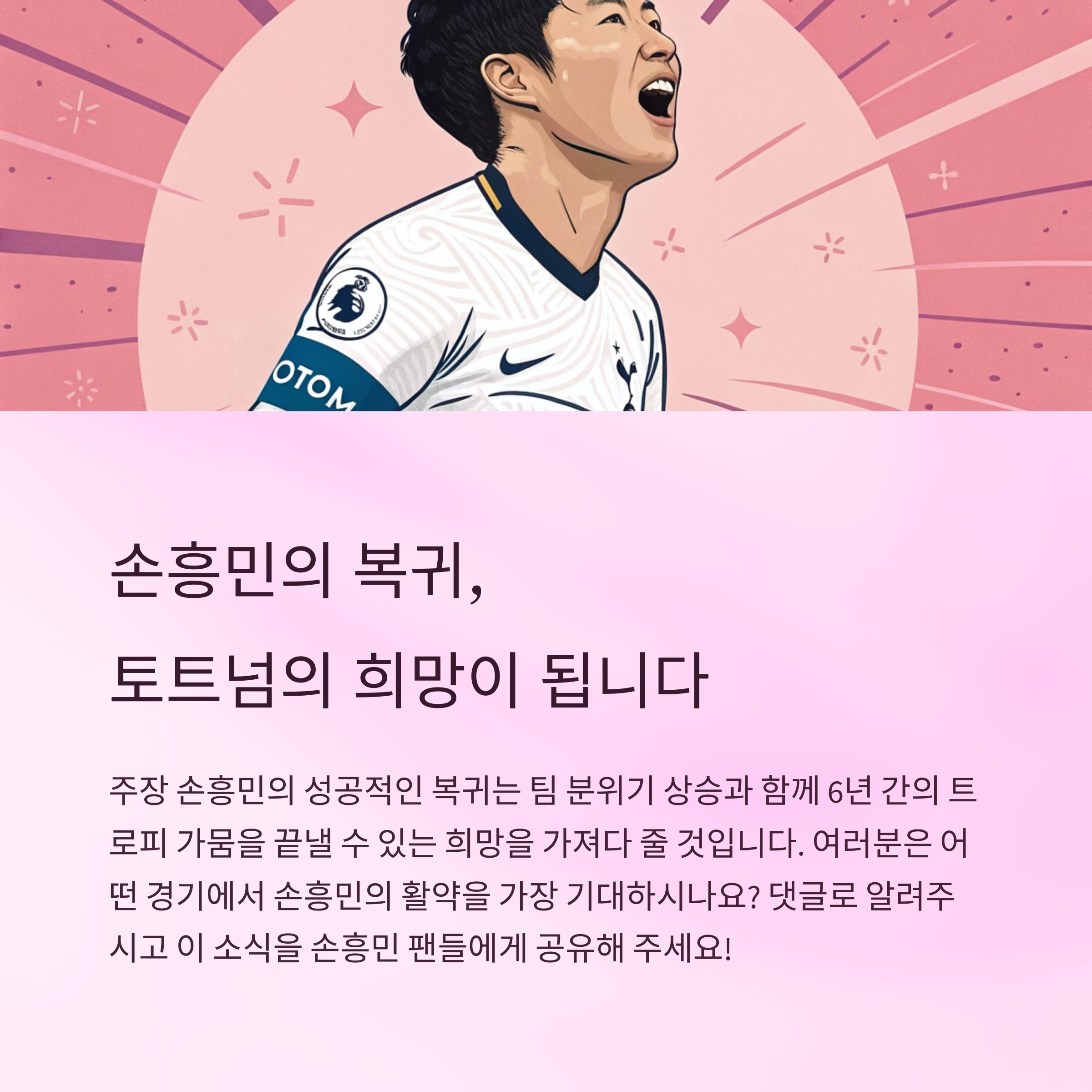 손흥민 선수의 오랜 기다림 끝에 다시 그라운드에 서게 될 순간이 다가오고 있습니다.
