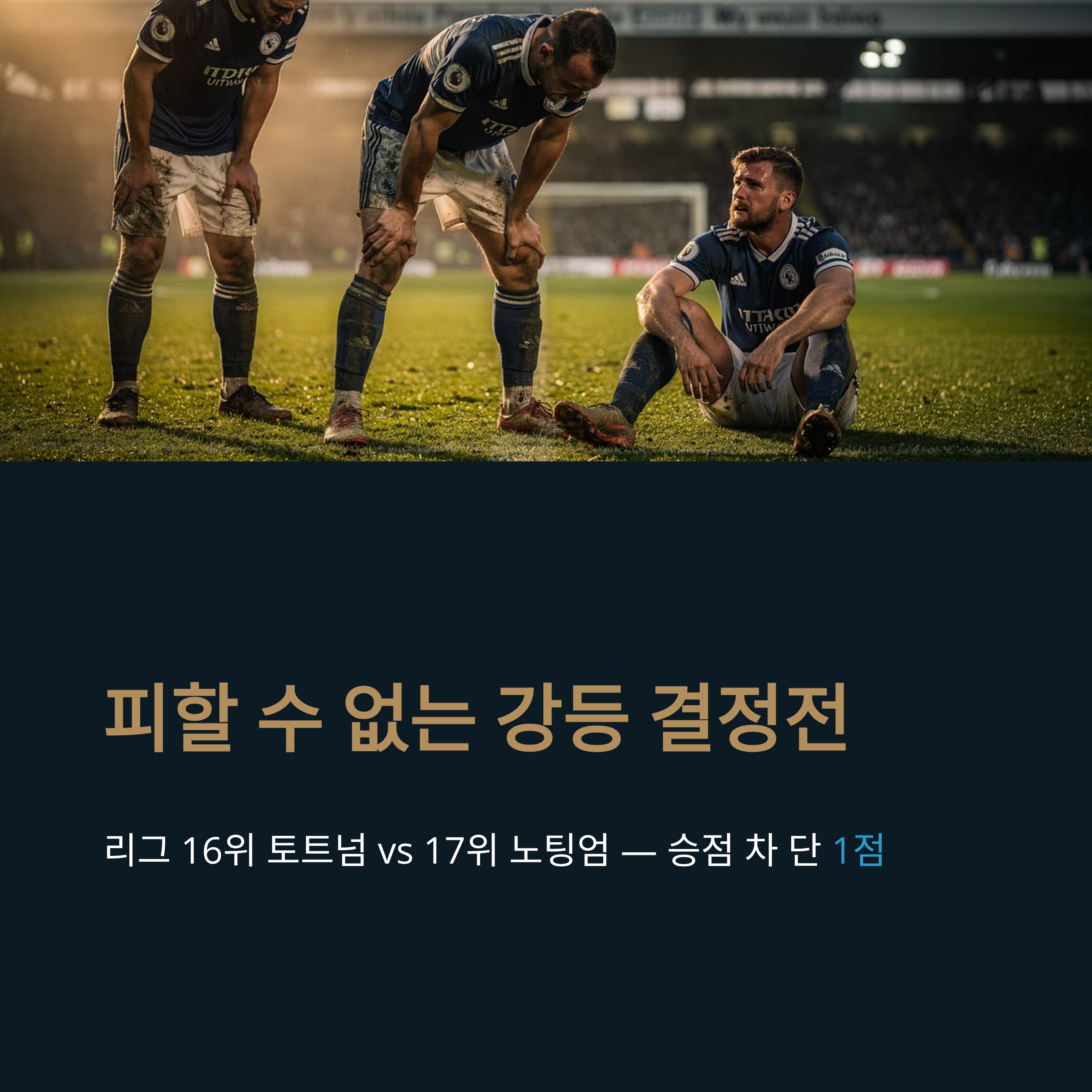 2025-26 시즌 프리미어리그의 막바지, 토트넘 홋스퍼와 노팅엄 포레스트가 피할 수 없는 외나무다리에서 만납니다. 리그 16위 토트넘과 17위 노팅엄의 승점 차는 단 1점. 바로 아래 18위 웨스트햄이 무서운 기세로 추격해오고 있어, 이번 31라운드 맞대결은 사실상의 '강등 결정전'이자 '승점 6점짜리' 경기로 불립니다. 본 글에서는 최근 분위기 반전에 성공한 토트넘과 주중 유로파리그에서 120분 연장 혈투를 치른 노팅엄의 상반된 상황을 분석하고, 이 경기가 두 팀의 운명에 미칠 영향을 심도 있게 조명해 보겠습니다.