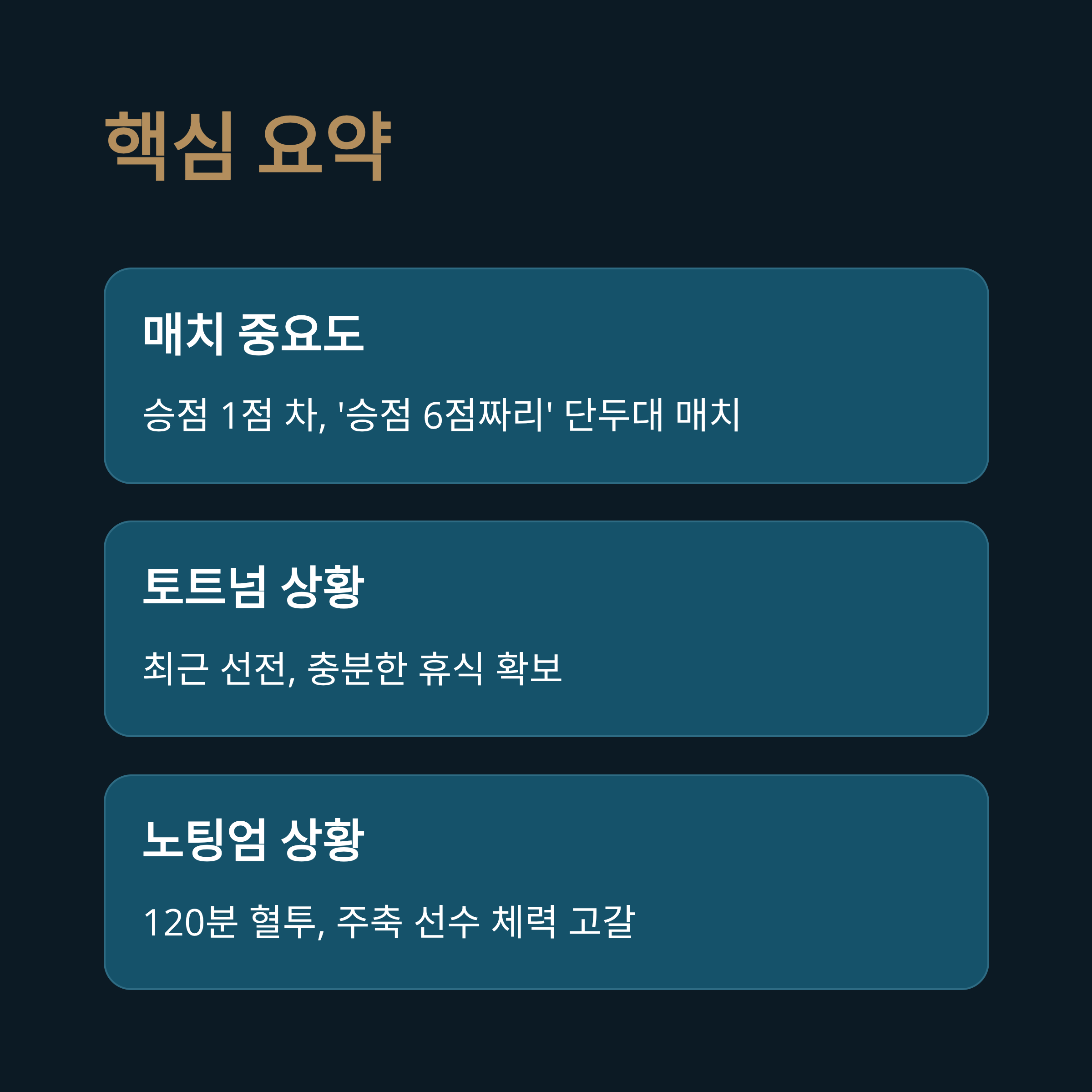 - 분석 1: '승점 6점짜리' 단두대 매치의 무게