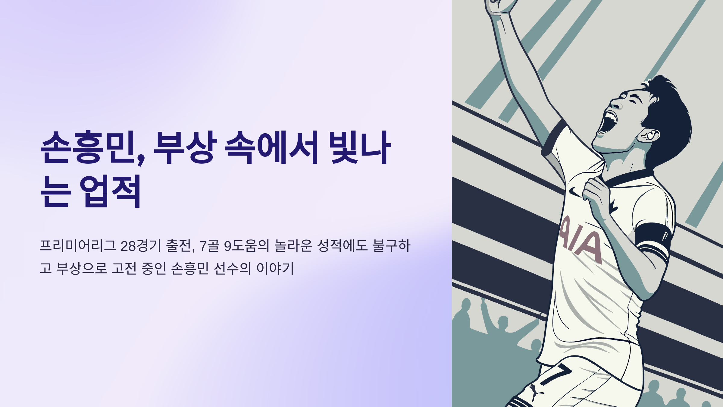 1. 손흥민 선수는 부상 상태에도 불구하고 이번 시즌 프리미어리그 28경기에 출전, 7골 9도움을 기록했습니다.