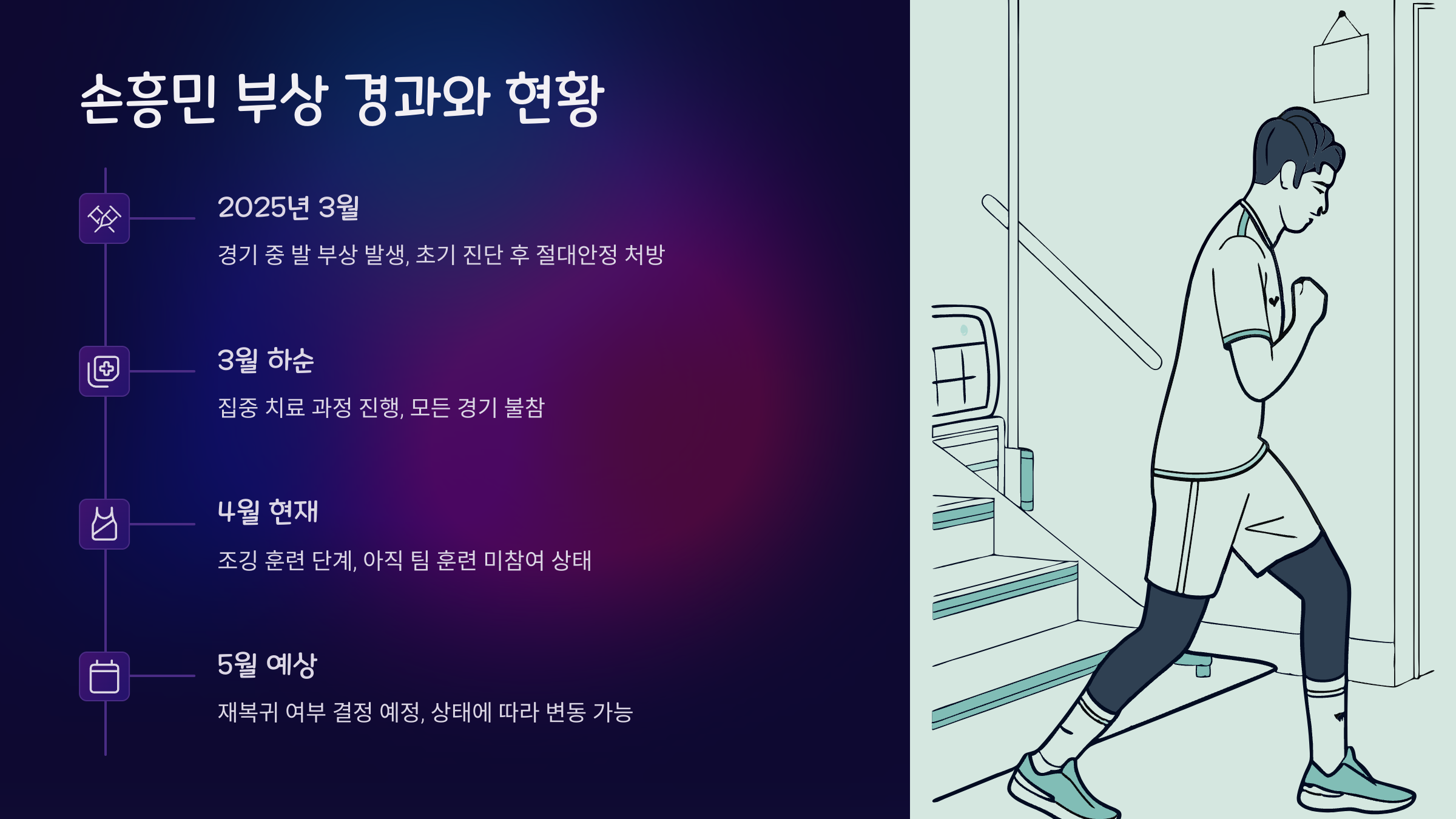 - 손흥민 부상 경과와 결장 배경