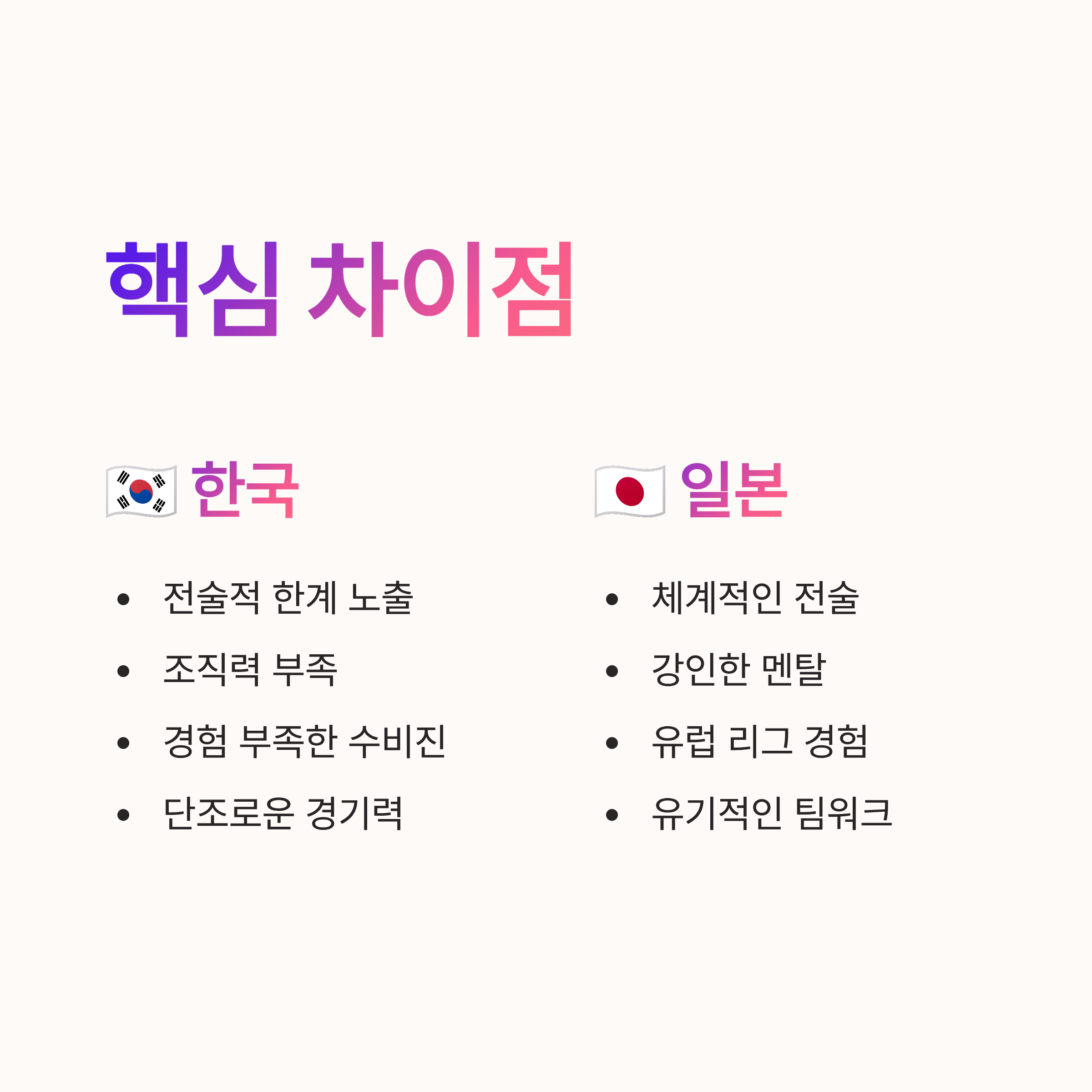 • 한국 축구의 현주소와 일본 성과 비교
