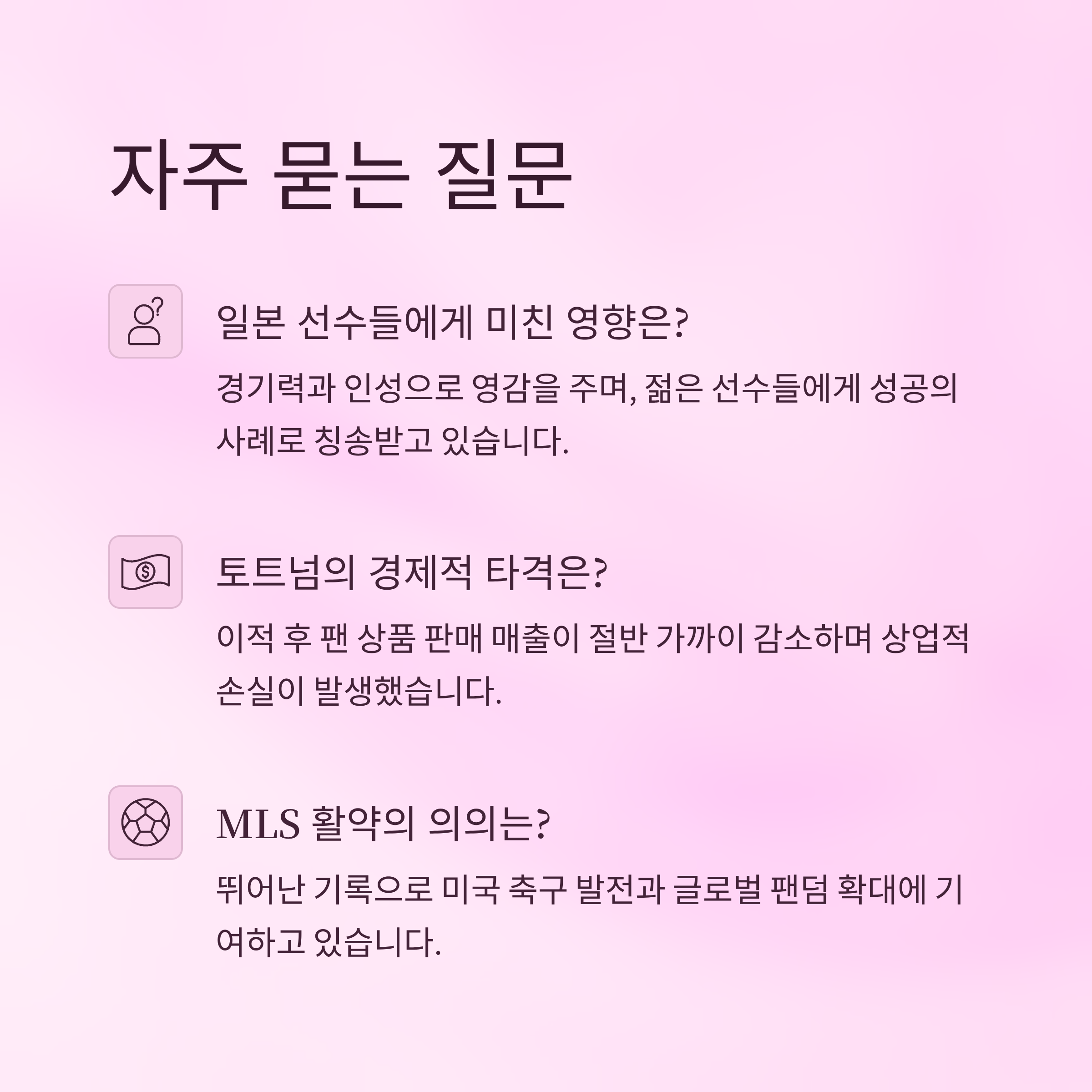 | Q. 손흥민의 MLS 활약이 가지는 의의는 무엇인가요? |