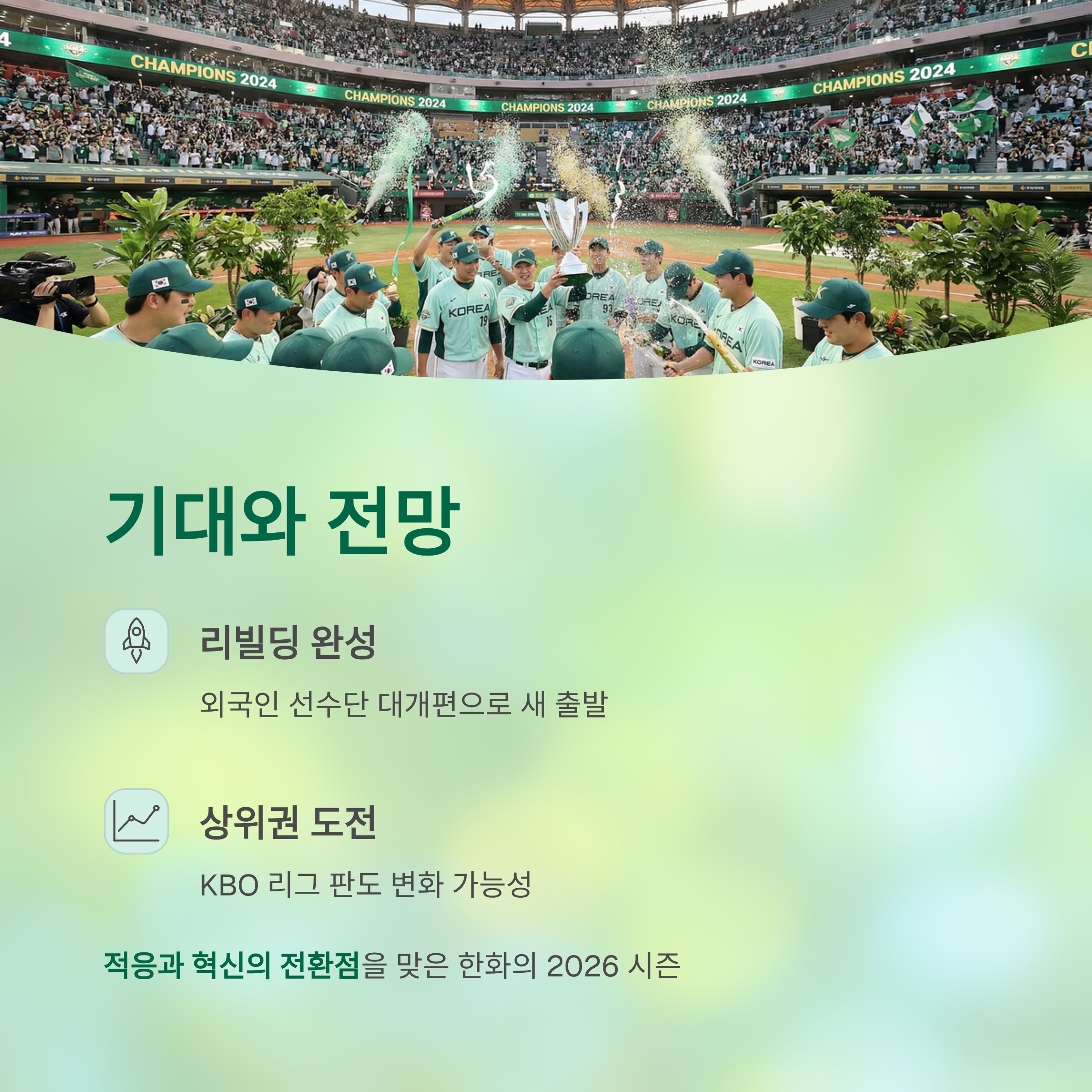 - 투수진은 공백이 예상되나, 타선의 강화는 올해 한화의 큰 방향성을 보여줍니다.