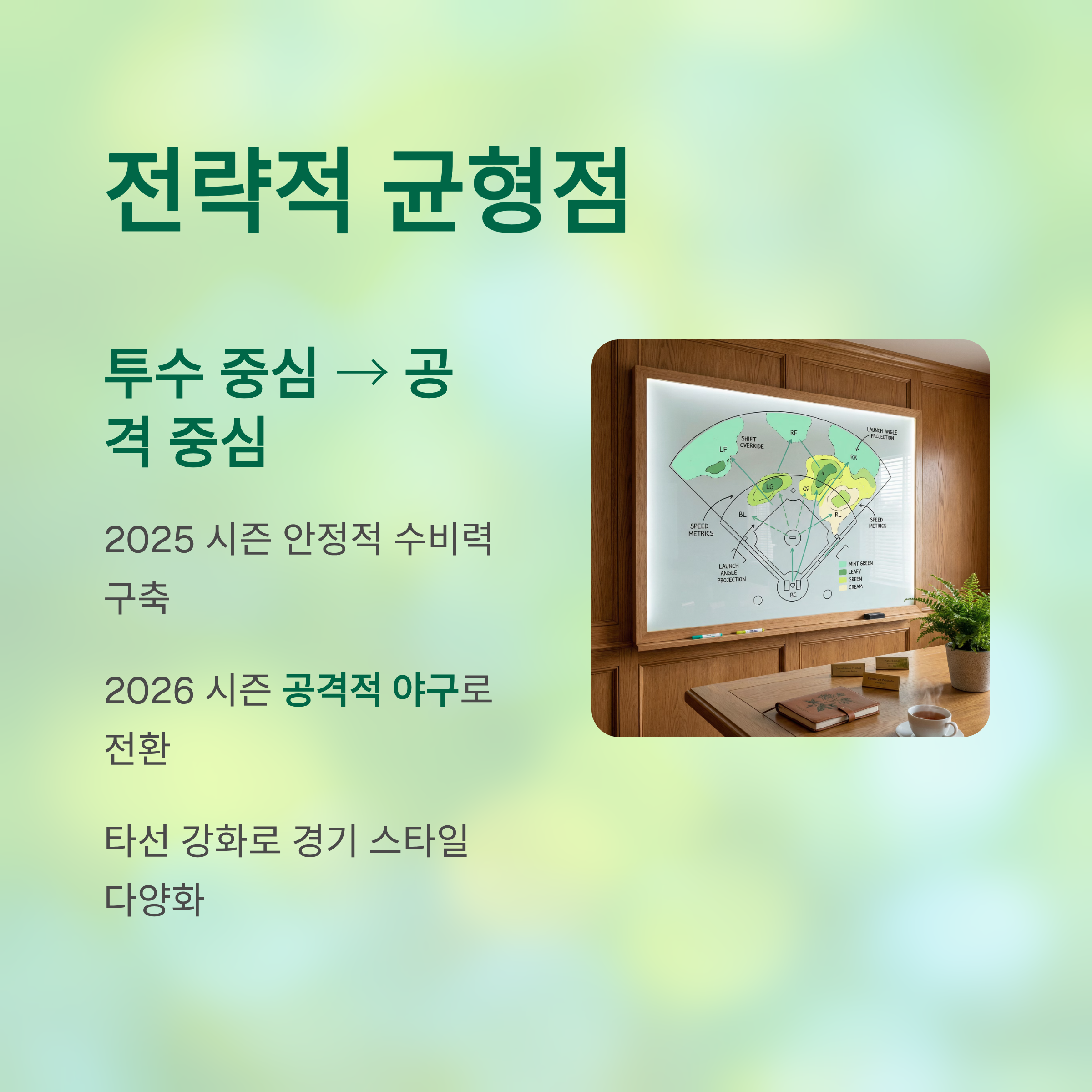 폰세와 와이스의 이탈은 한화가 전략적으로 투수와 타자의 균형점을 다시 찾게 되는 계기가 되었다. 2025 시즌 투수 중심의 안정적 경기를 통해 단단한 수비력을 구축했던 한화는, 이제 강백호, 채은성, 그리고 요나단 페라자로 이어지는 타선을 구축함으로써, 공격력에 초점을 맞춘 팀 전술을 구사하려는 의지를 보이고 있다.
