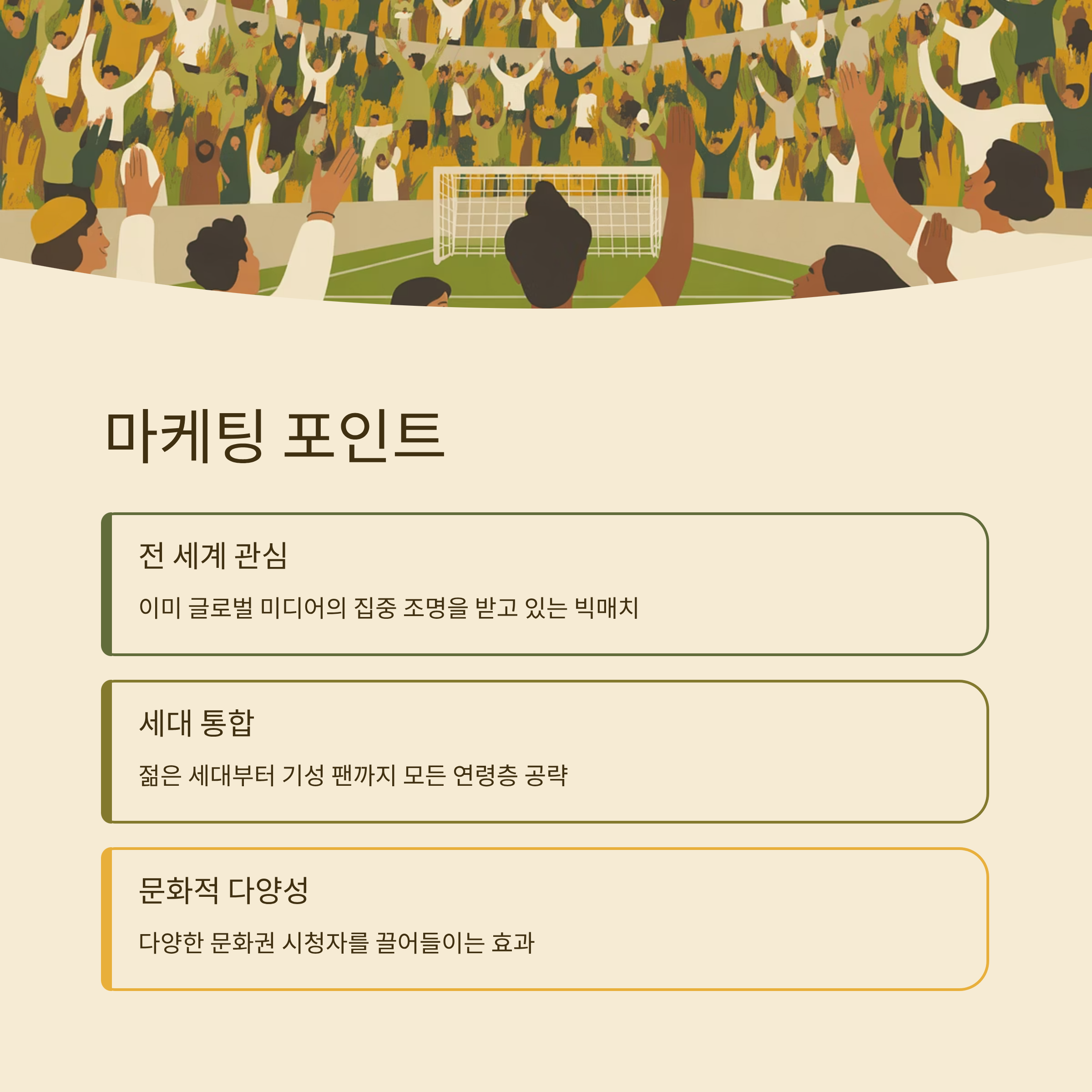 3. 이 경기는 미국 내 축구 문화 확산과 MLS 브랜드 가치를 크게 향상시킬 것으로 기대됩니다.