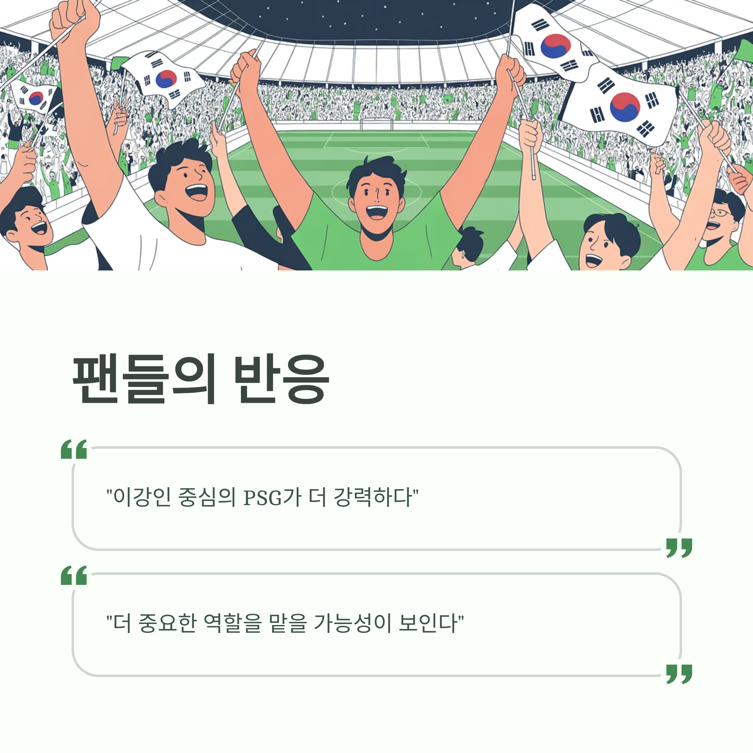 - 팬들 사이에서 "이강인 중심의 PSG", "더 중요한 역할의 가능성"이라는 긍정적 의견이 지배적입니다.