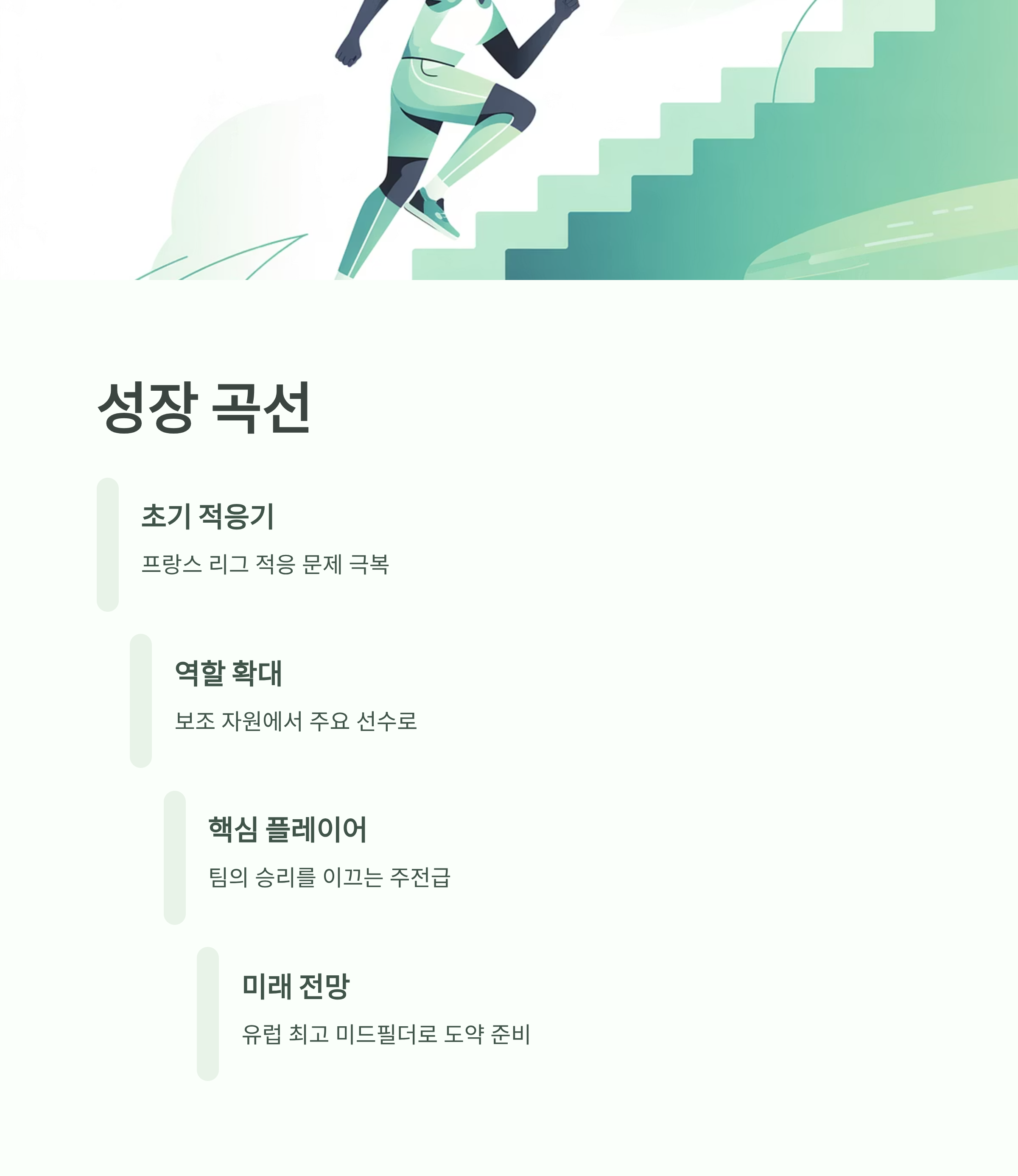 이강인 선수가 또 한 번 축구팬들을 열광케 했습니다. 파리 생제르맹에서 리옹과의 경기에서 종료 직전 극적인 어시스트로 결승골을 만들어내며 PSG의 승리를 이끌었습니다. 처음 프랑스 리그에 도전했을 때만 해도 적응 문제를 겪었던 이강인은, 현재 팀의 핵심 자원으로 자리잡는 과정에서 인상적인 퍼포먼스를 보여주고 있습니다. 그렇다면, 이강인이 PSG에서 어떤 변화를 거치며 성장했는지, 그리고 이번 경기에서의 활약이 어떤 의미를 가졌는지 살펴보겠습니다.