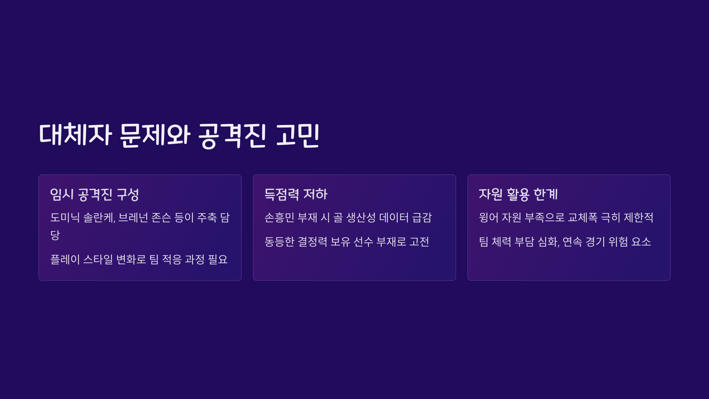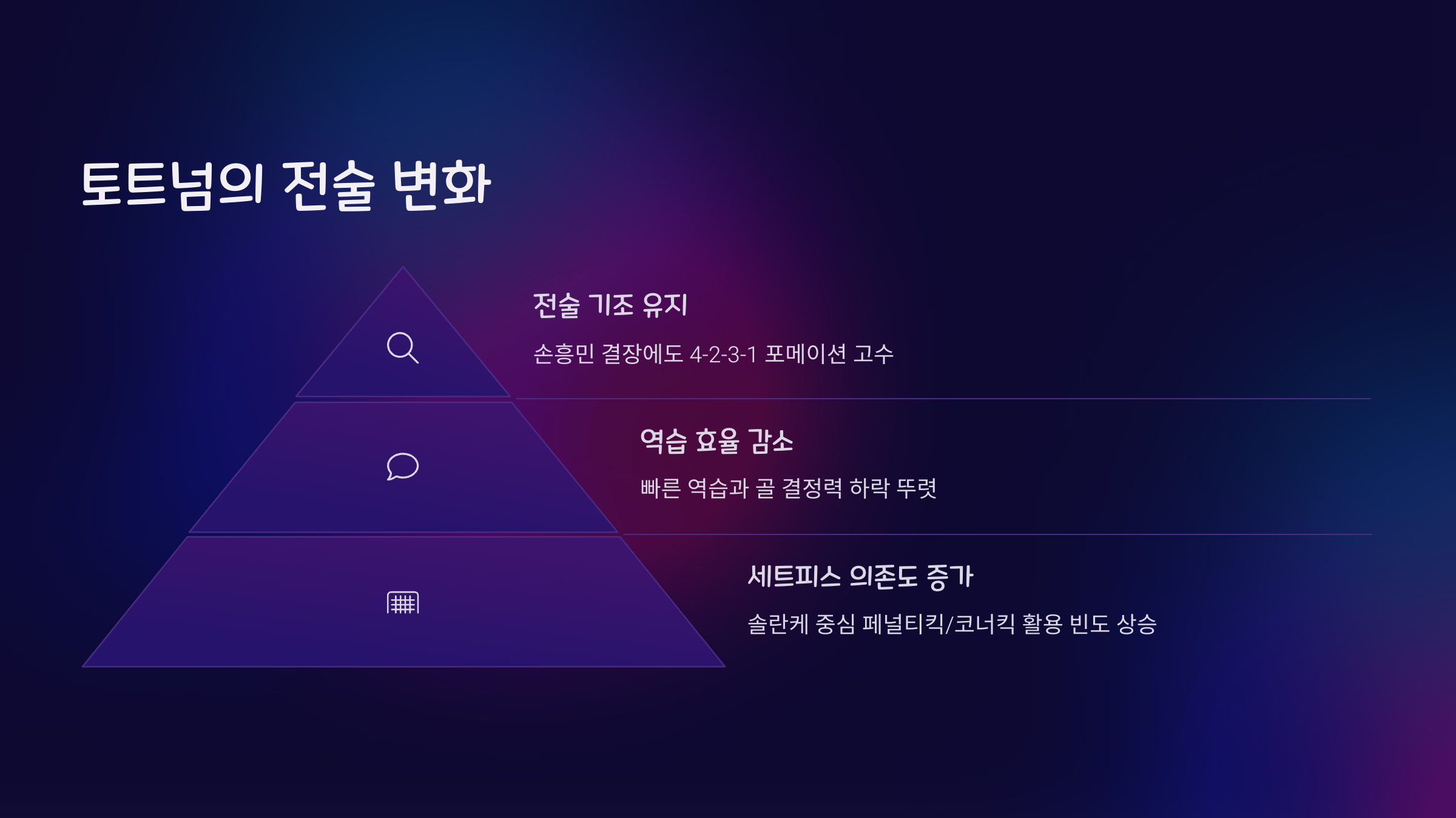 손흥민의 공백은 전술적 대변화를 불러왔습니다.