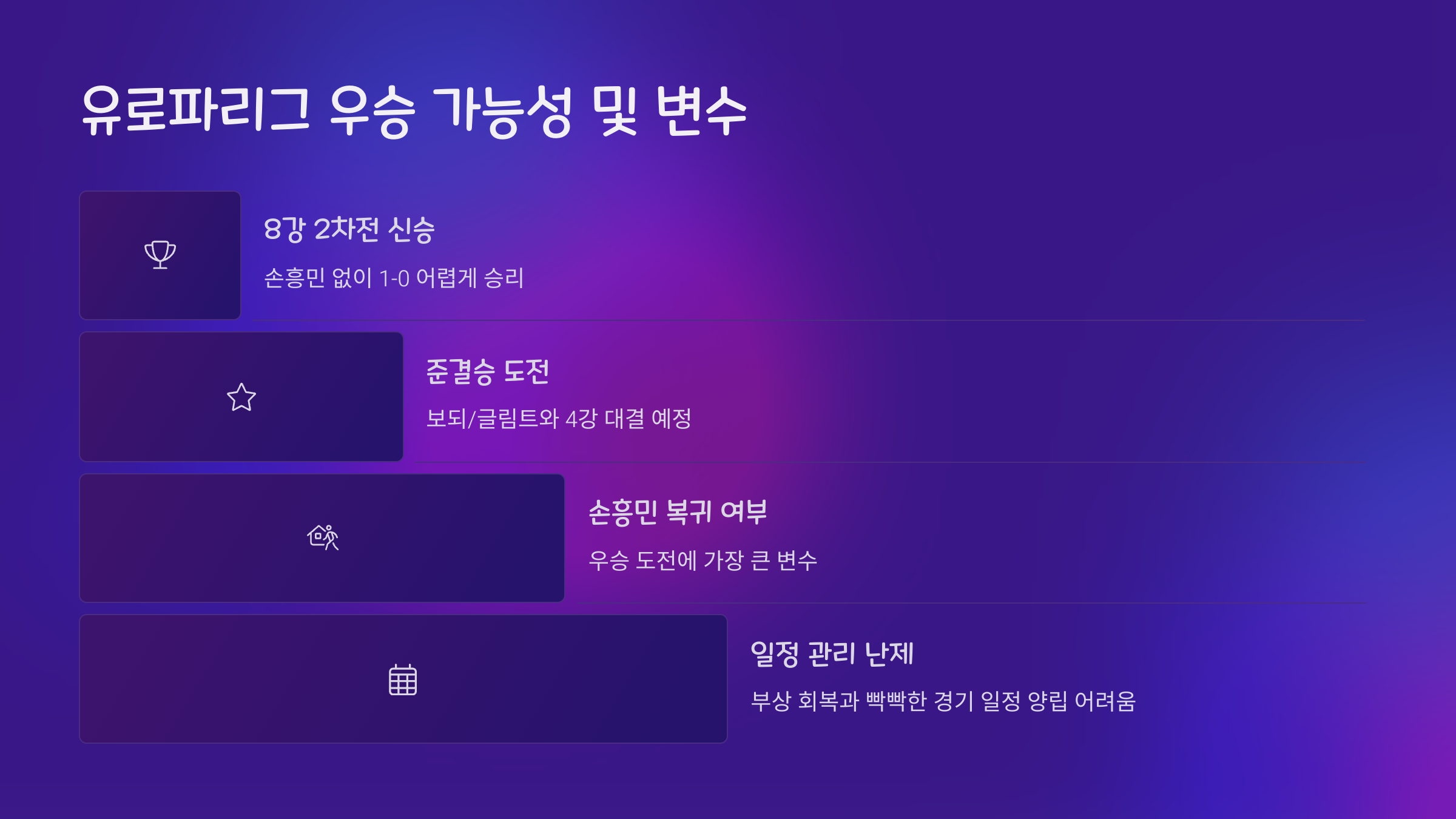 또한, 유로파리그 우승이라는 토트넘의 목표가 어떻게 흔들릴 수 있는지에 대해 다각도로 살펴봅니다.